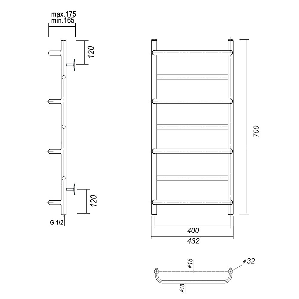 Водяной полотенцесушитель Aquanet Mauro(г2) 800x500