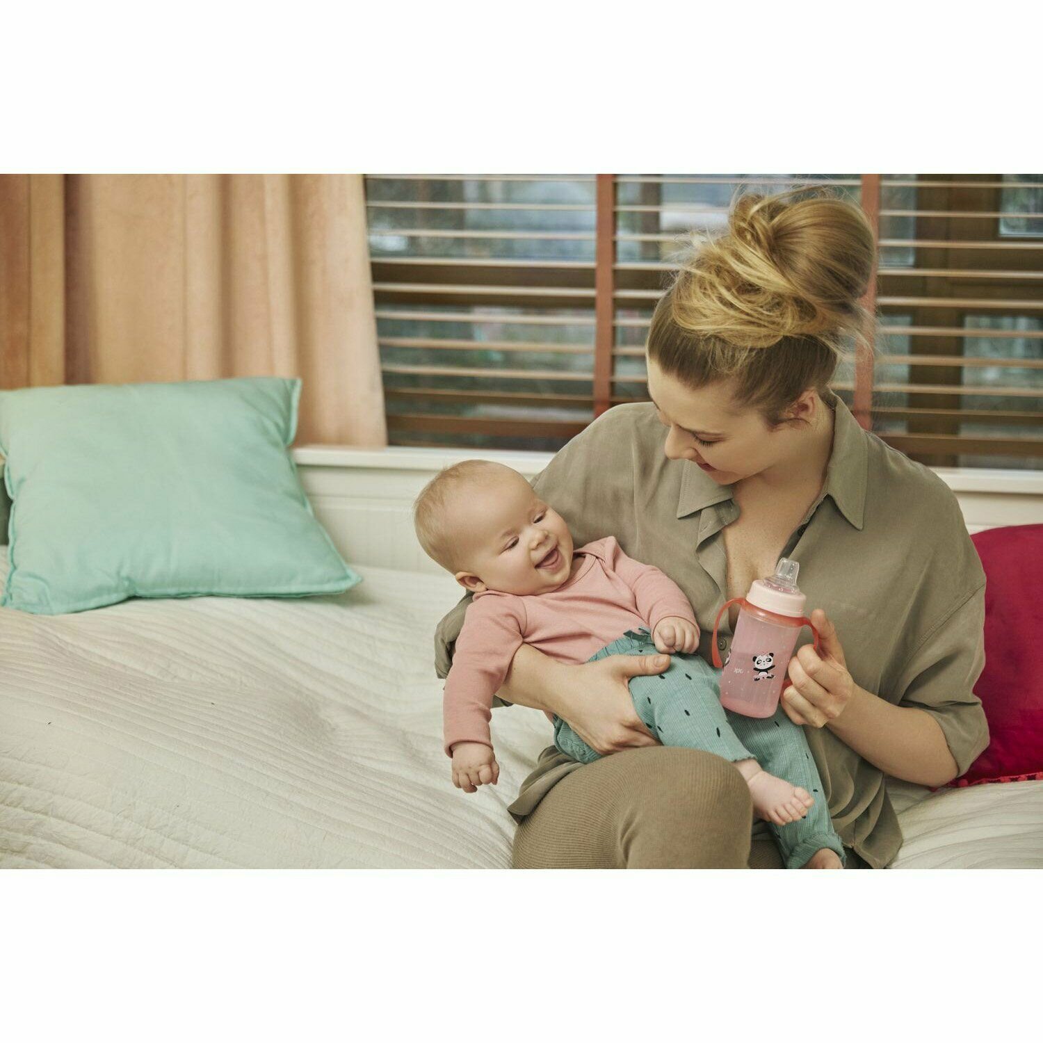 | Отзыв: | Идеальный вариант перехода с бутылочки. Ручки удобные, носик из мягкого силикона. Моется хорошо. |