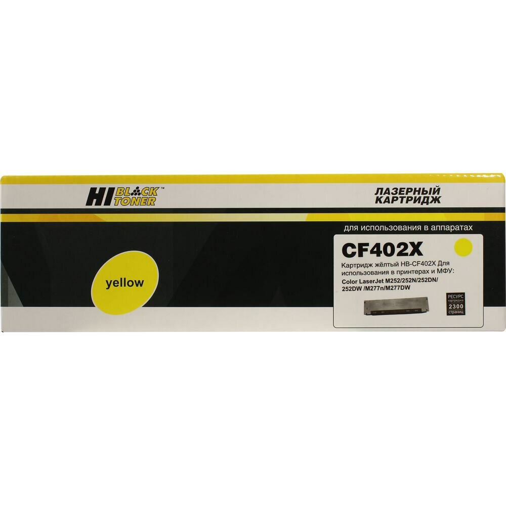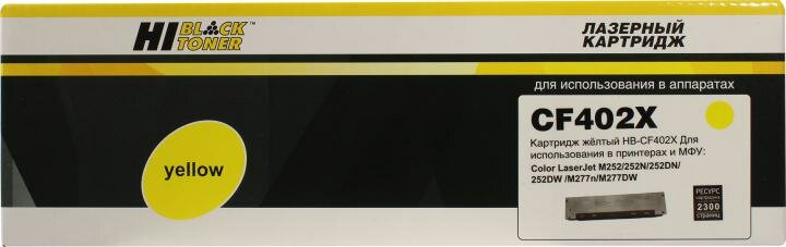 Картридж CF402X Hi-Black подходит HP CLJ M252/252N/252DN/252DW/277n/277DW, N201X, Y, 2.3K