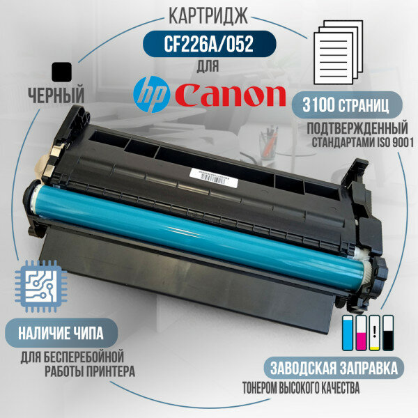 Картридж GalaPrint CF226A/052 (HP 26A) для принтеров HP LaserJet Pro M402/M402d/M402dn/M402dne/M402dw/M402n/M426/M426dw/M426fdn/M426fdw/Canon LBP-212/LBP-214/LBP-215/MF-426/MF-428/MF-429 3100 копий лазерный, совместимый