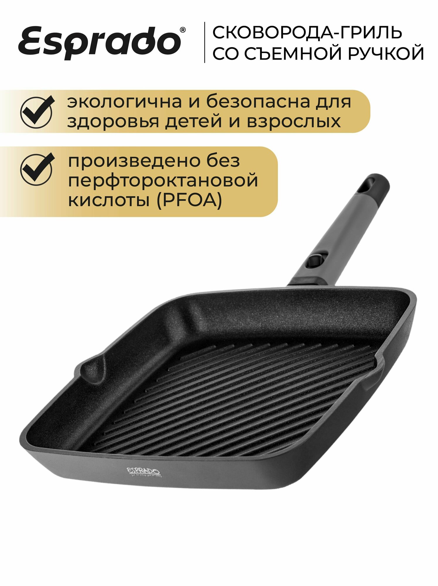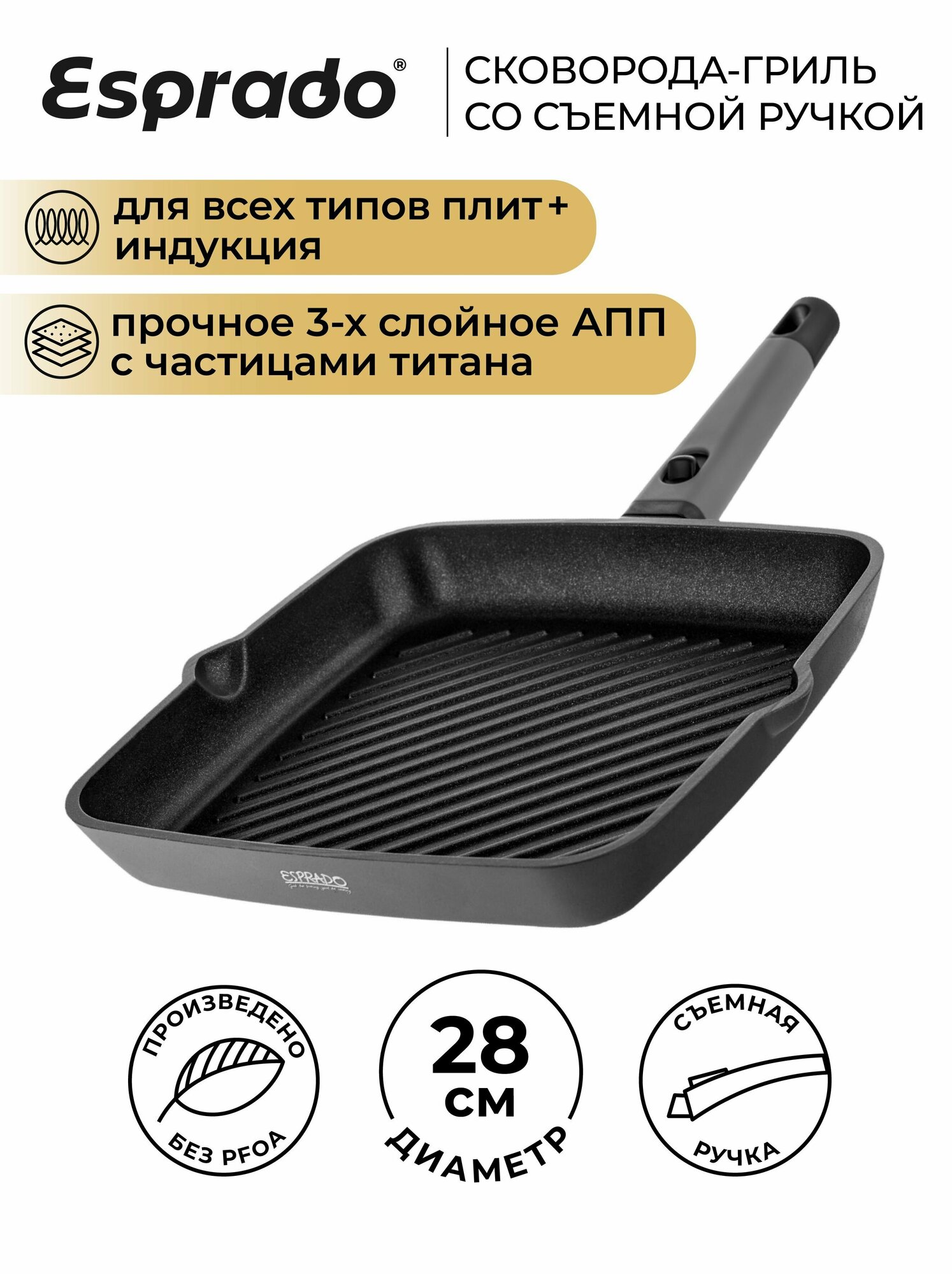 Сковорода-гриль ESPRADO Carne, индукция, 28 см, со съемной ручкой