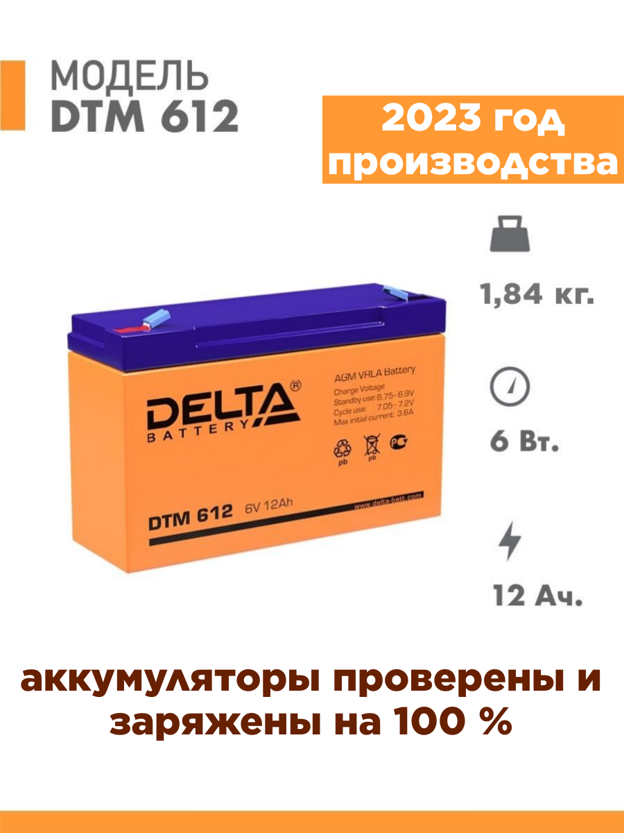 Аккумуляторная батарея DELTA Battery DTM 612 6В 12 А·ч