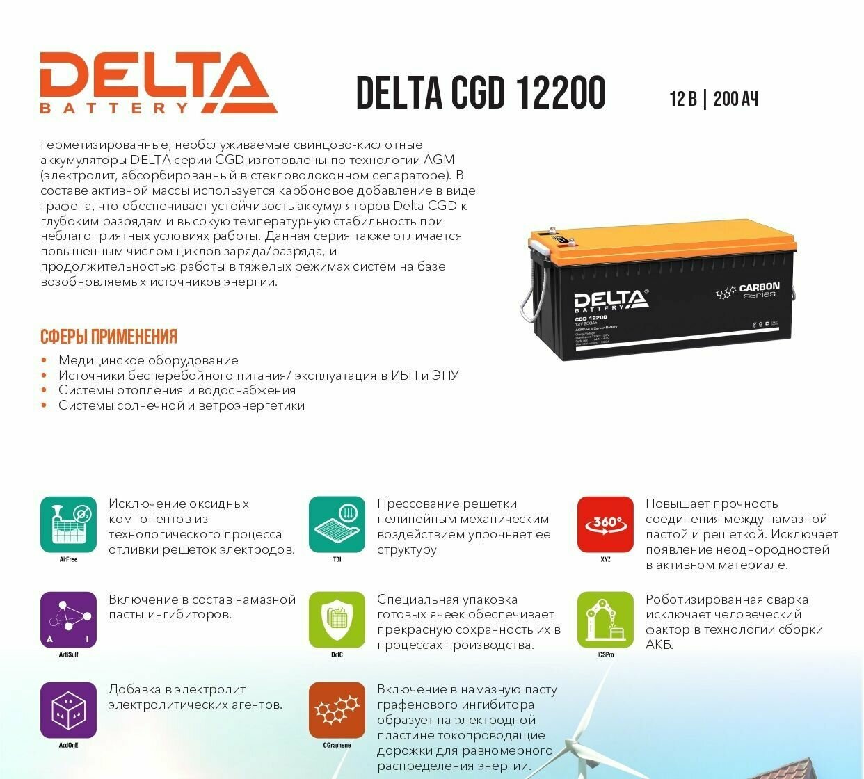 Аккумулятор тяговый Delta CGD 12200 (12В 200 Ач) Carbon