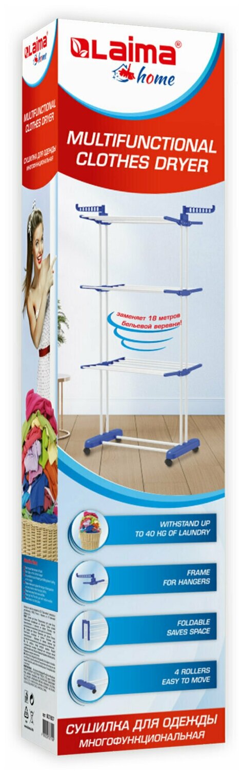 Laima Сушилка напольная для белья раскладная Многофункциональная, 3 уровня, на колесах, Home, 607807 . интересное: