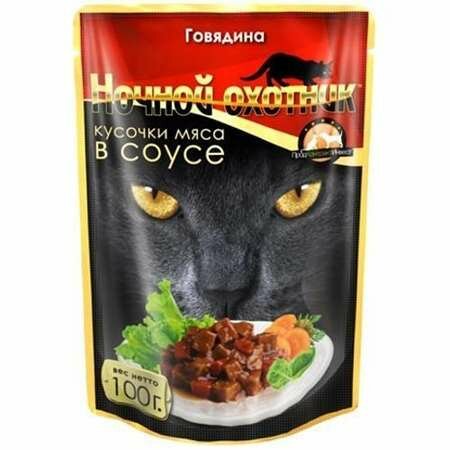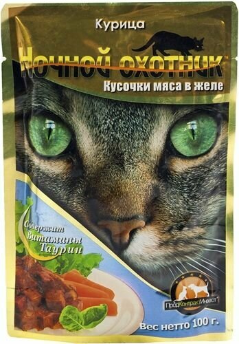 Ночной охотник влажный корм для взрослых кошек всех пород, курица в желе 100 гр (10 шт)