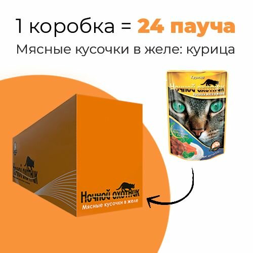 Ночной охотник влажный корм для взрослых кошек всех пород, курица в желе 100 гр (44 шт)