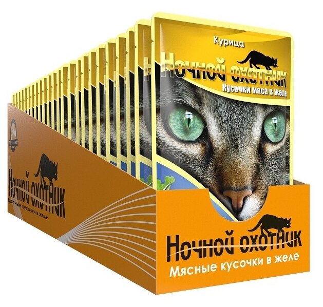 Ночной охотник влажный корм для взрослых кошек всех пород, курица в желе 100 гр (34 шт)
