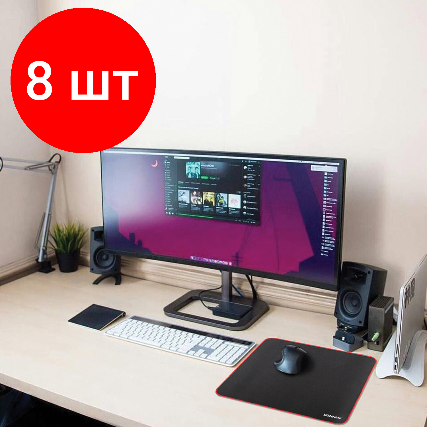 Купить Комплект 8 шт, Коврик компьютерный для мыши большой CYBER OUTLAW 400х355х3мм, ткань + резина, SONNEN 513616