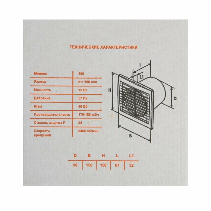 Вентилятор осевой / вытяжка в ванную / вытяжка в туалет d100 мм, белый