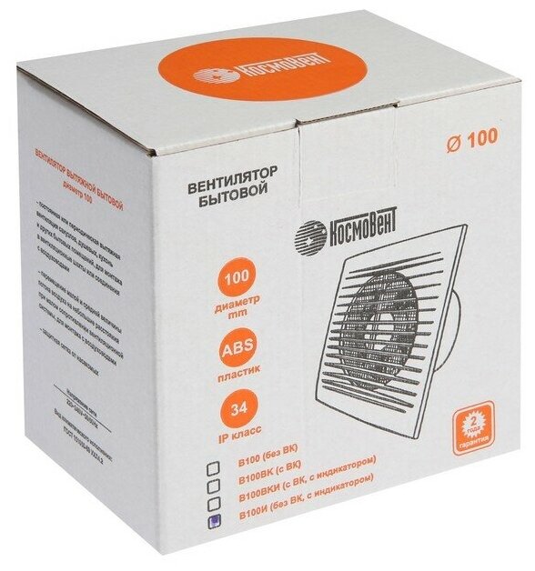 Вентилятор вытяжной "КосмоВент" В100И, d=100 мм, 10 Вт, 40 дБ, 105 м³/ч, без выкл, индикатор