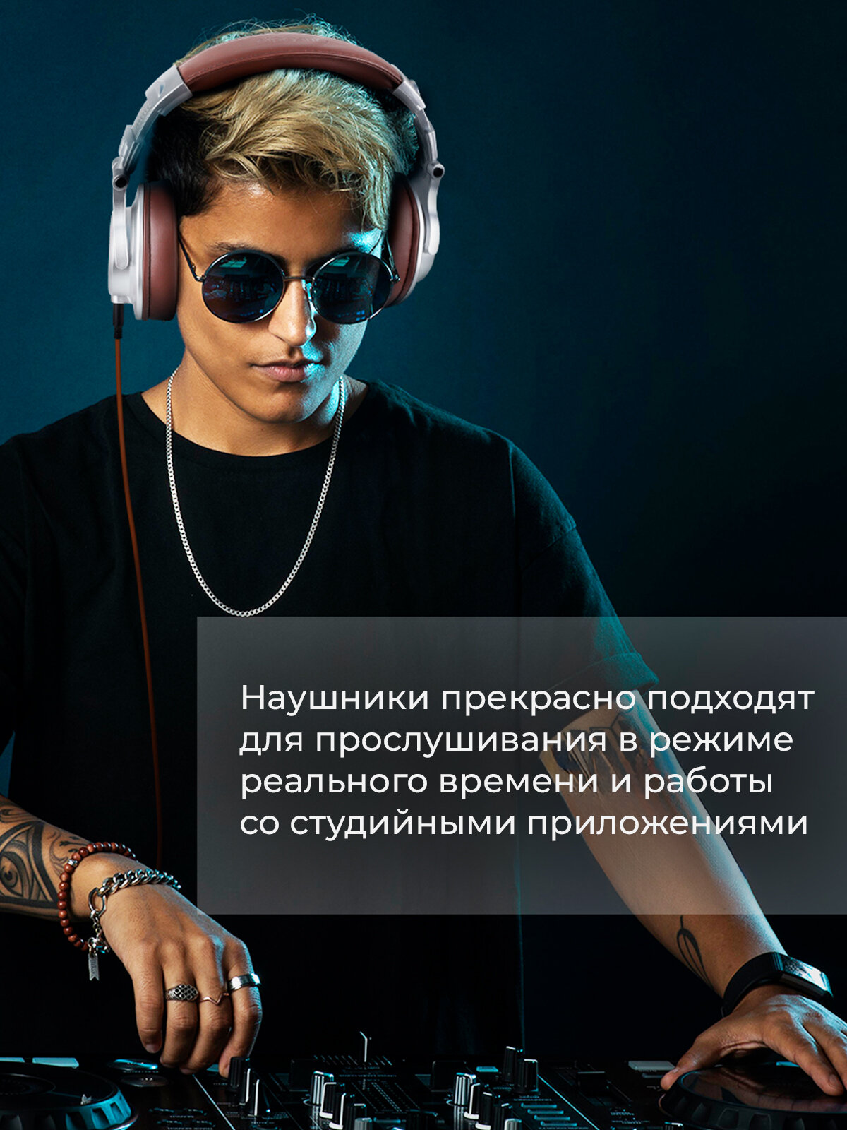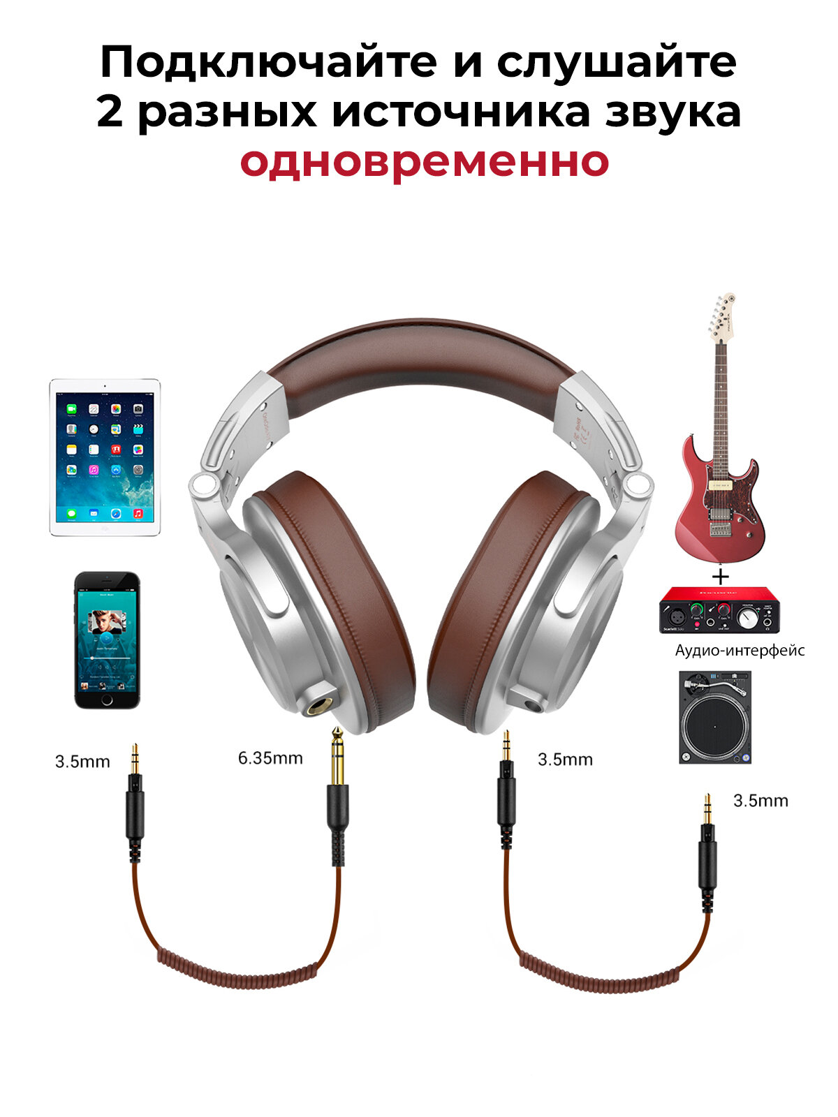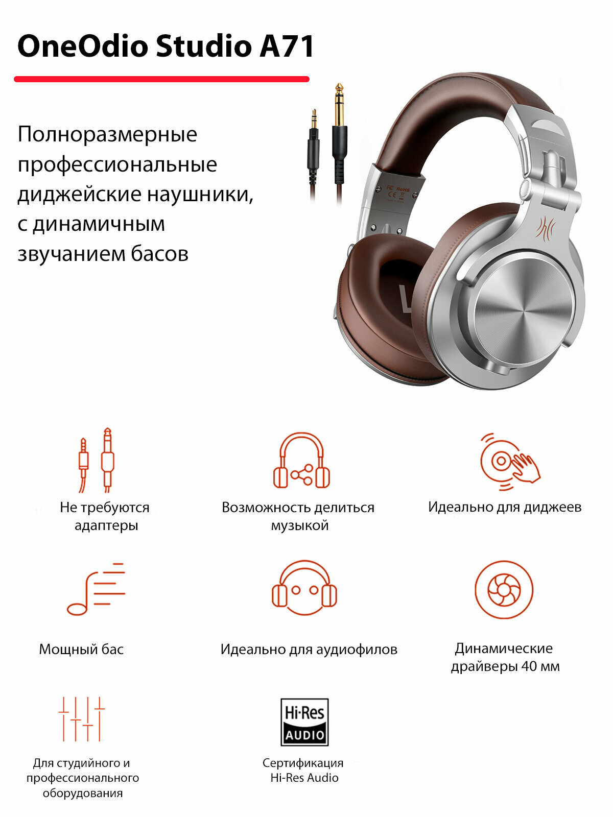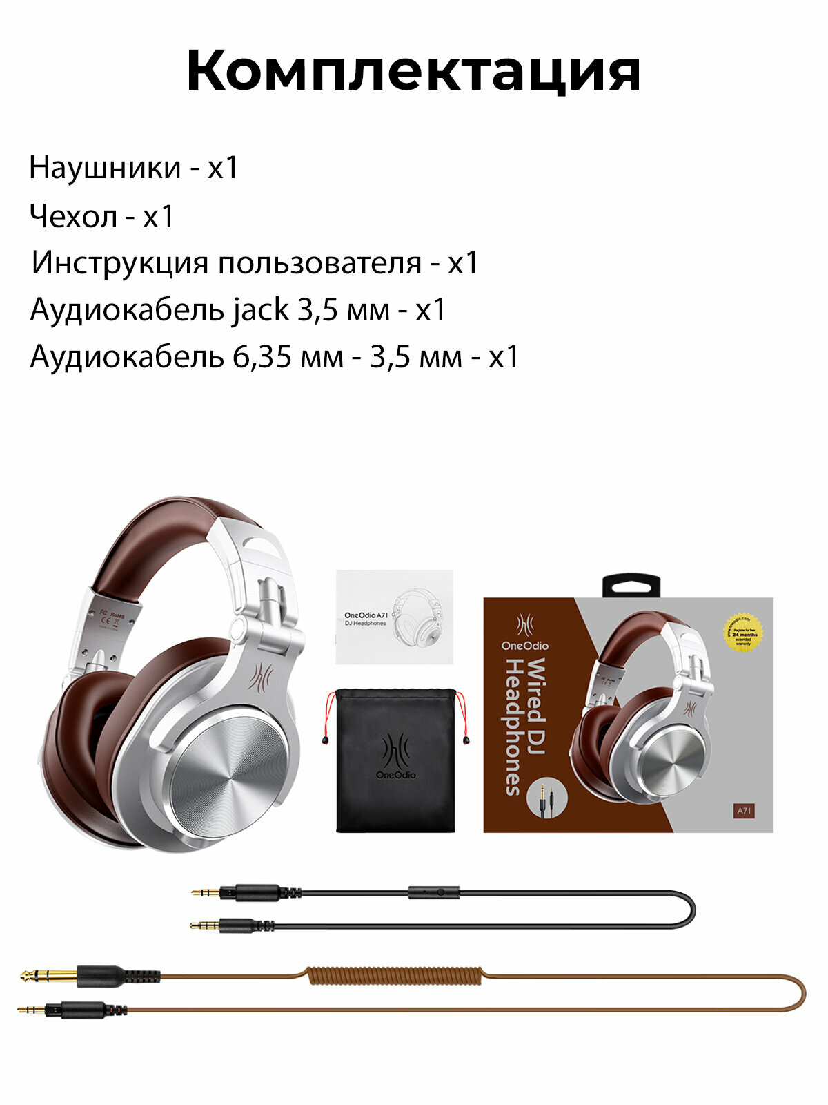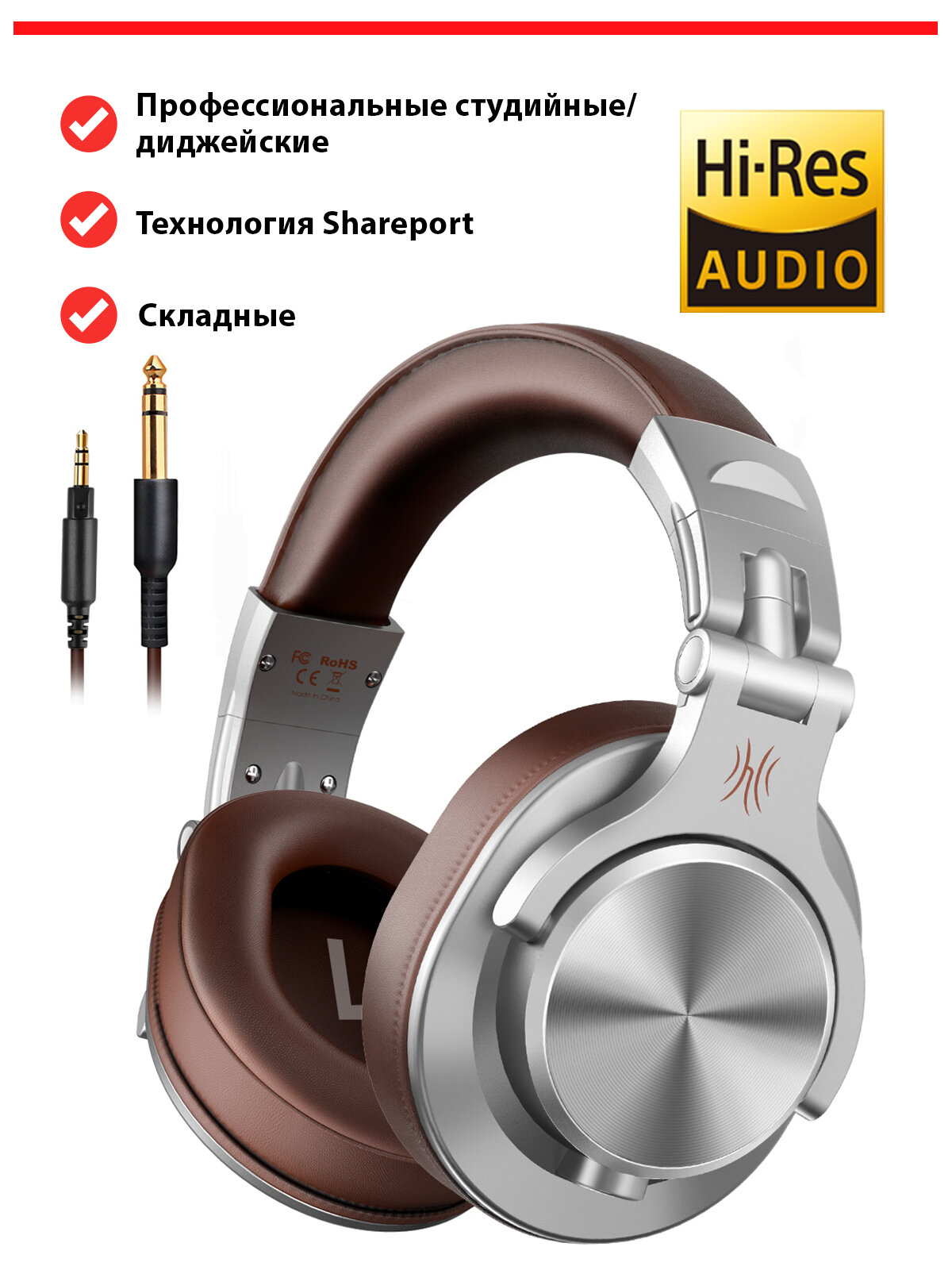 Наушники OneOdio Fusion A71, mini jack 3.5 mm, серебристый/коричневый