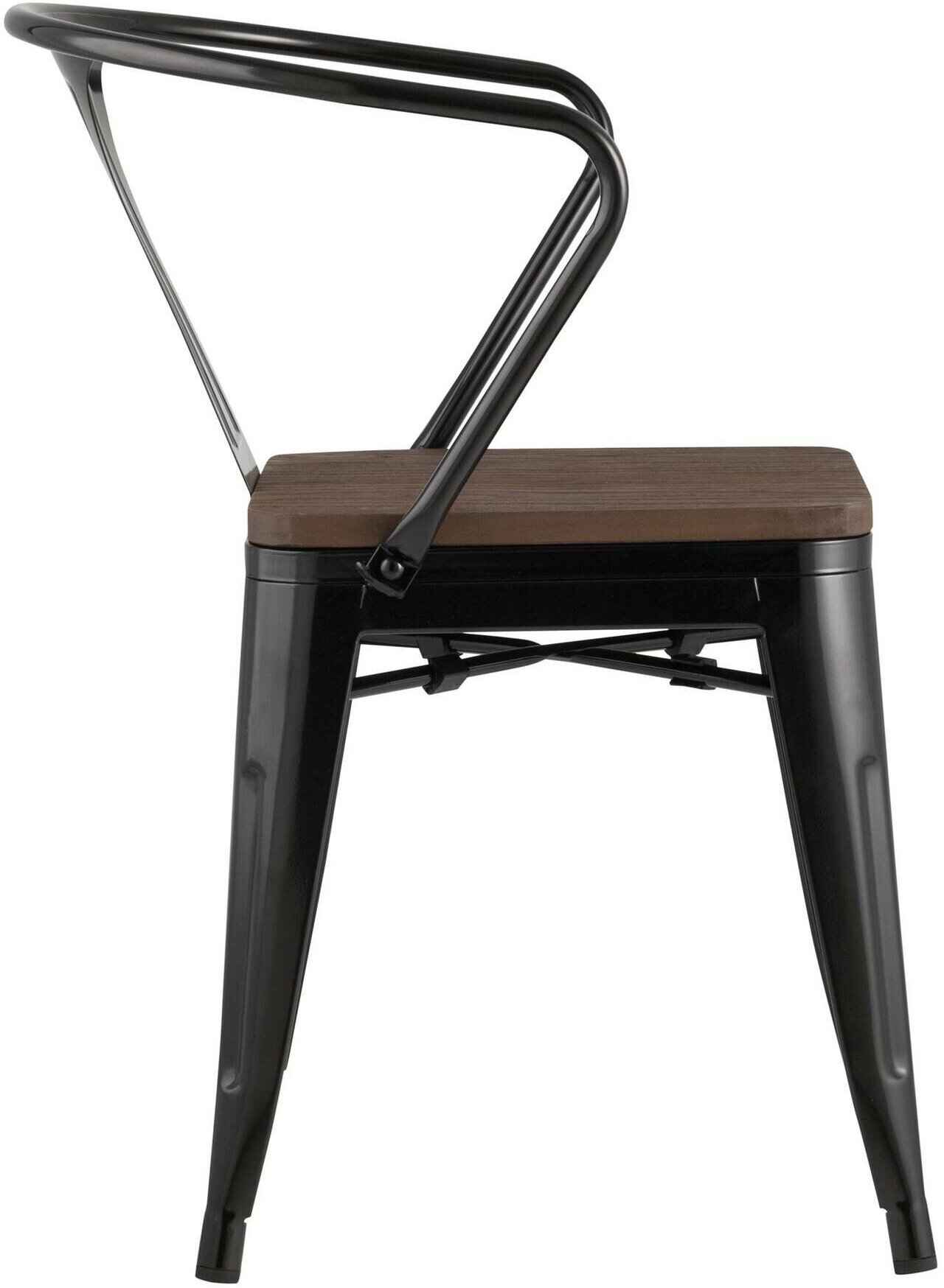 Стул | Tolix с подлокотниками черный глянцевый + темное дерево