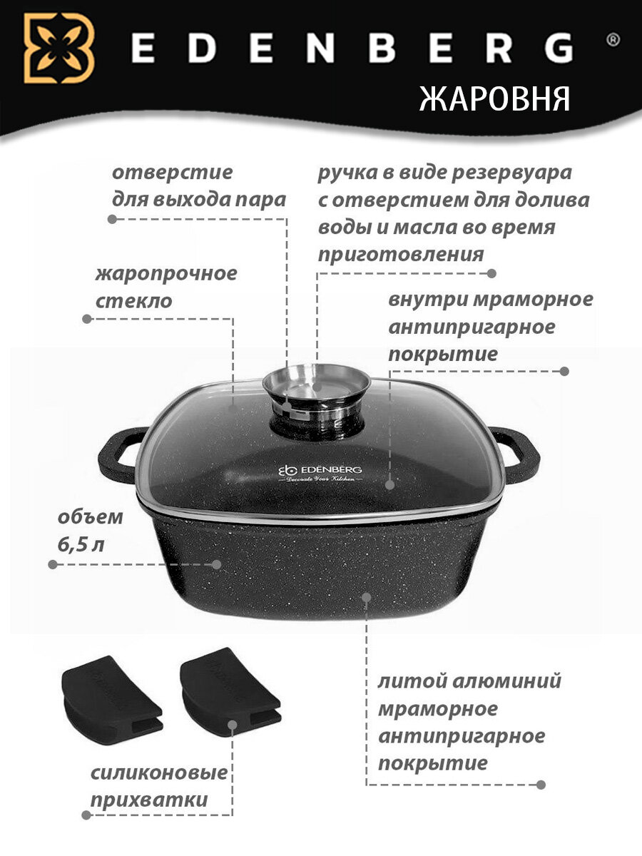Жаровня с крышкой Edenberg 6.5 л из литого алюминия с антипригарным покрытием для всех видов плит