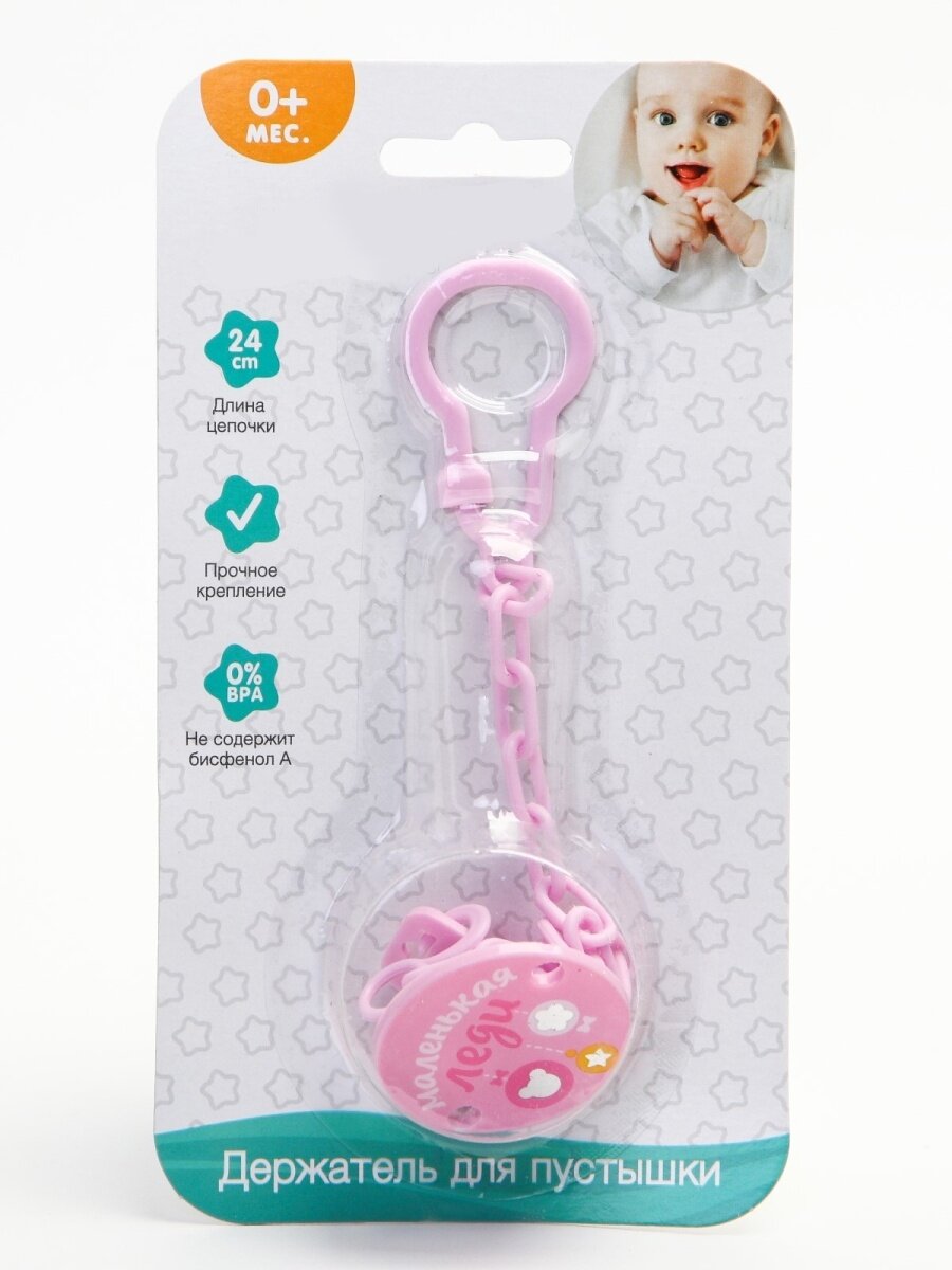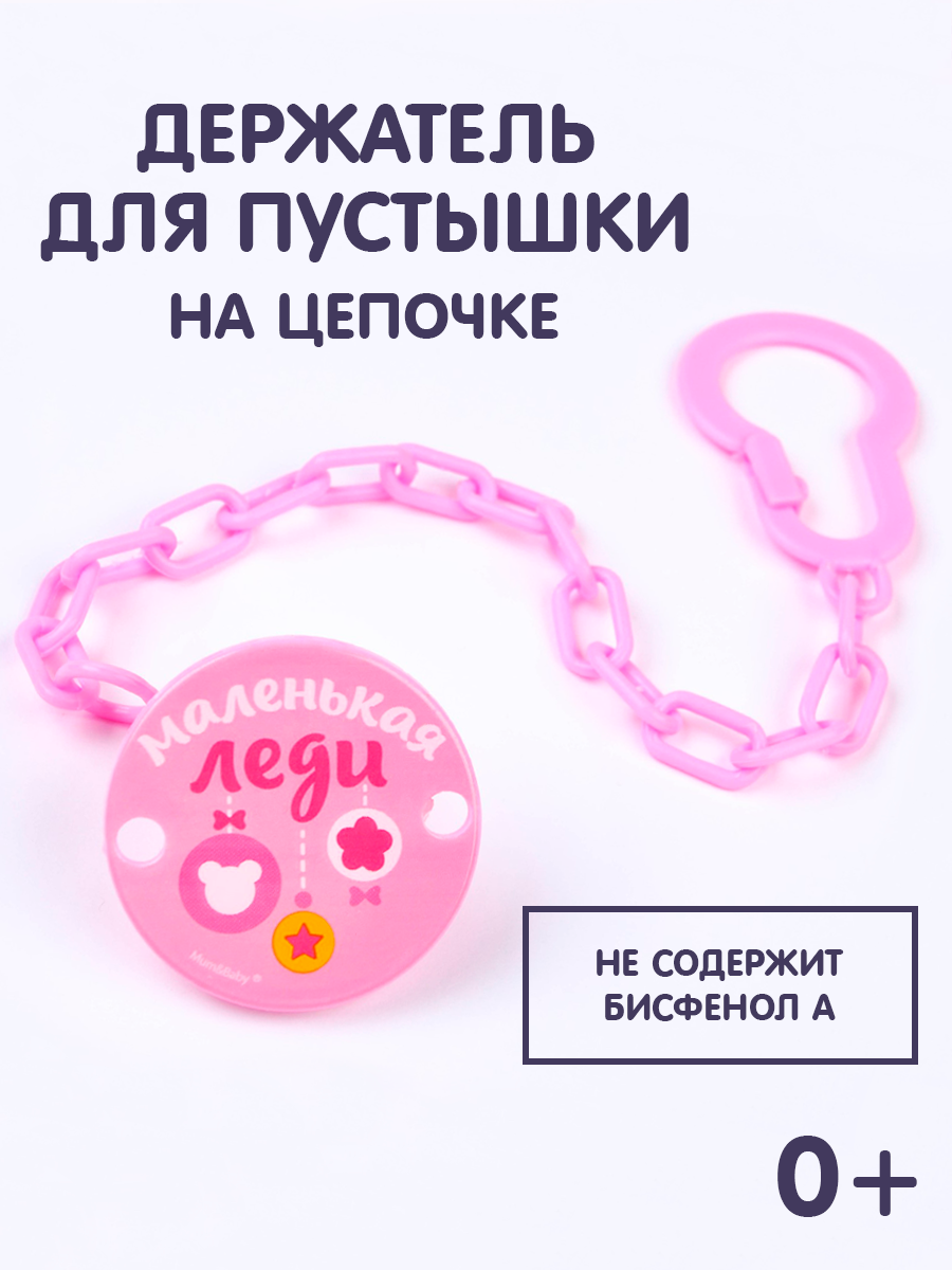 Держатель для соски - пустышки , «Маленькая леди», на цепочке, цвет розовый интересное: