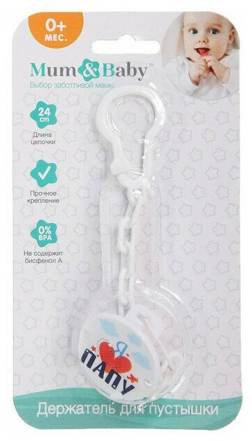 Mum&Baby Держатель для соски - пустышки «Я люблю папу», на цепочке цвет белый интересное: