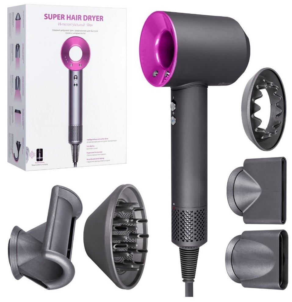 Фен набор для укладки волос Super Hair Dryer 6-in-1, 3 метра, Серый с фиолетовым интересное: