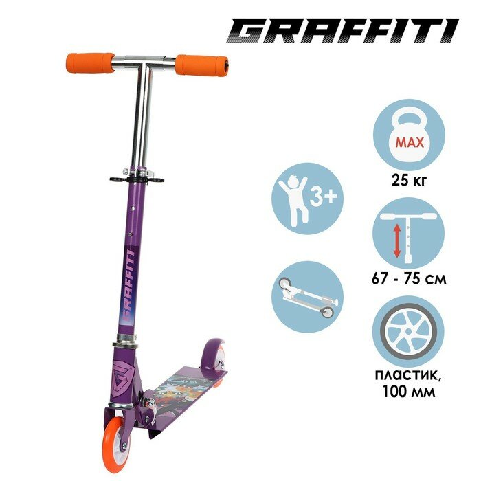 Самокат GRAFFITI "Лисичка", складной, колеса, PVC, диаметр колес 100 мм, цвет фиолетовый