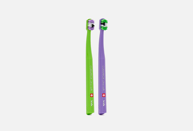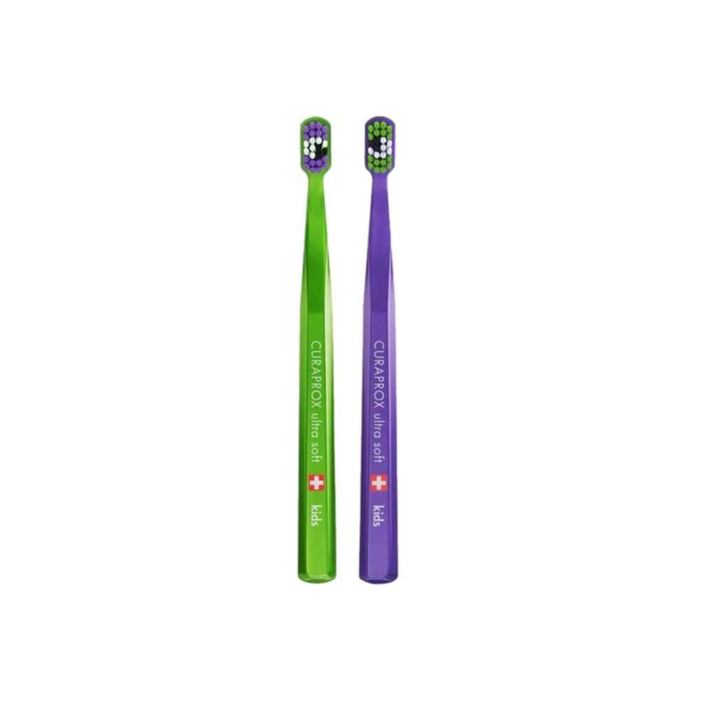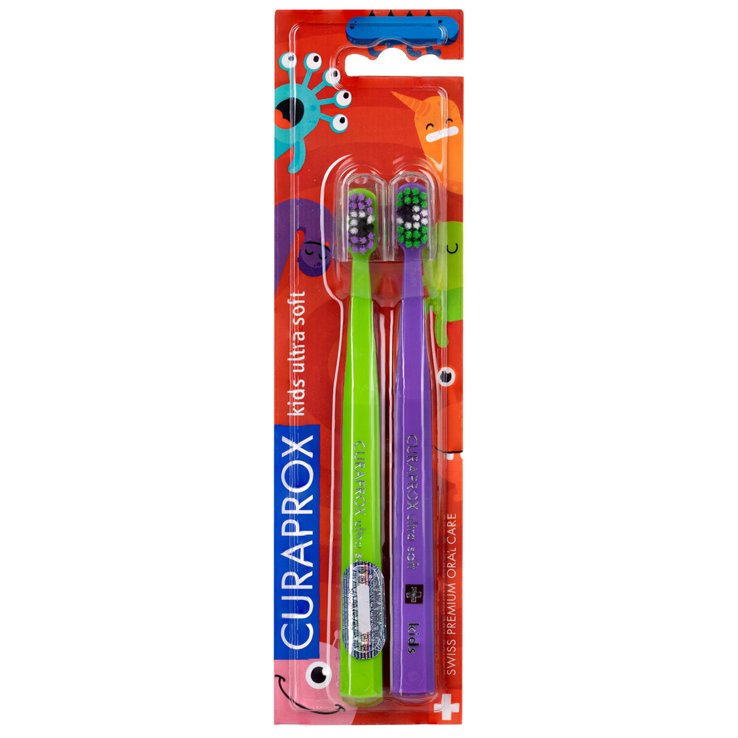 Набор зубных щеток CURAPROX Ultrasoft CSKids «Duo Little Bacterias Edition» (зеленая/фиолетовая), 2 шт.