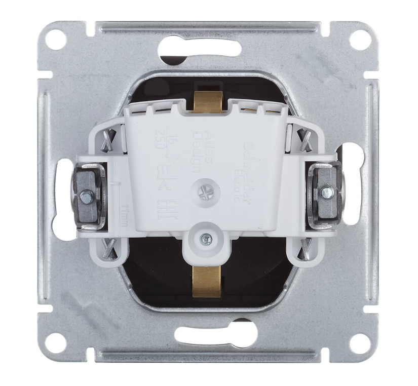 Розетка Schneider Electric AtlasDesign с заземлением, защитными шторками и крышкой. Мокко