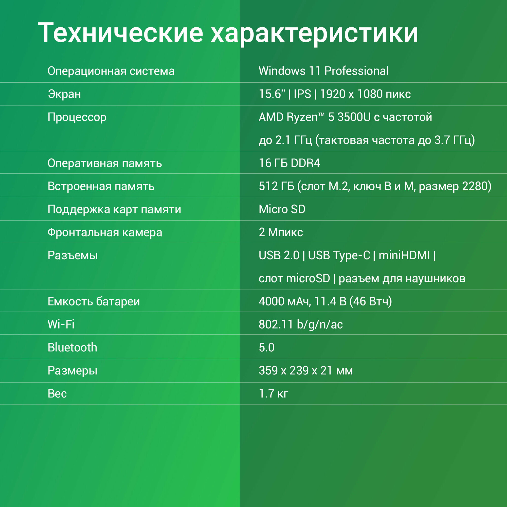 Ноутбук Digma EVE 15 C423 серый космос 15.6" FHD 5 3500U/16GB/512GB SSD/W11Pro