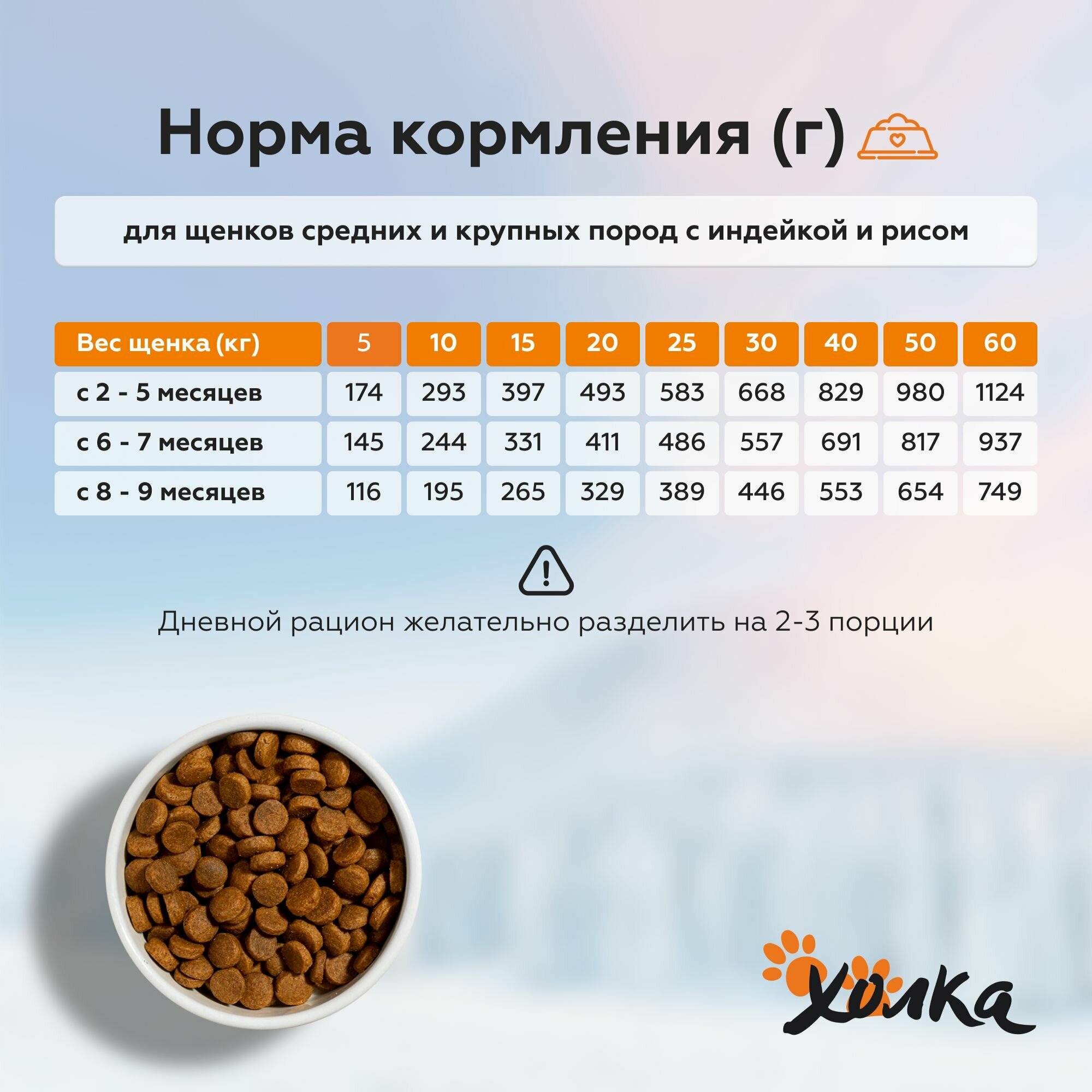 Холка Сухой корм для щенков средних и крупных пород, индейка с рисом, 3кг