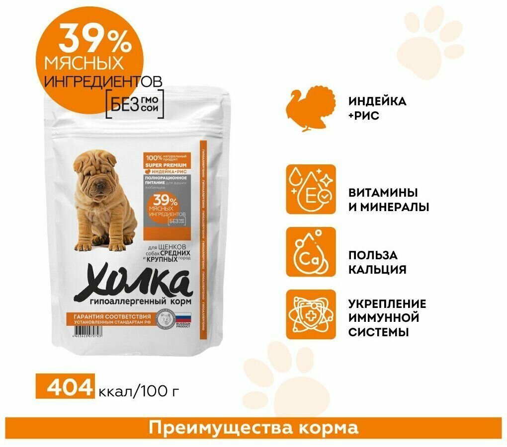 Купить Корм сухой Холка для щенков средних и крупных пород, гипоаллергенный, полнорационный, супер премиум корм для собак, индейка и рис 1,5 кг