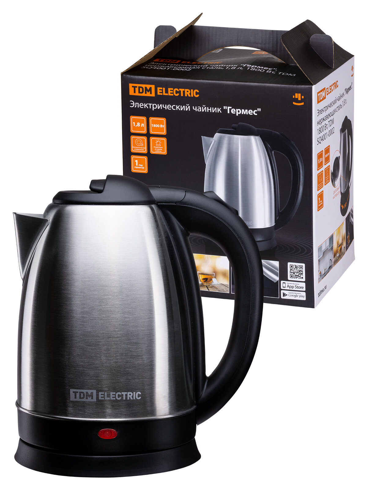 Купить Электрический чайник "Гермес", нержавеющая сталь, 1,8 л, 1800 Вт,, TDM SQ4001-0002 (1 шт.)