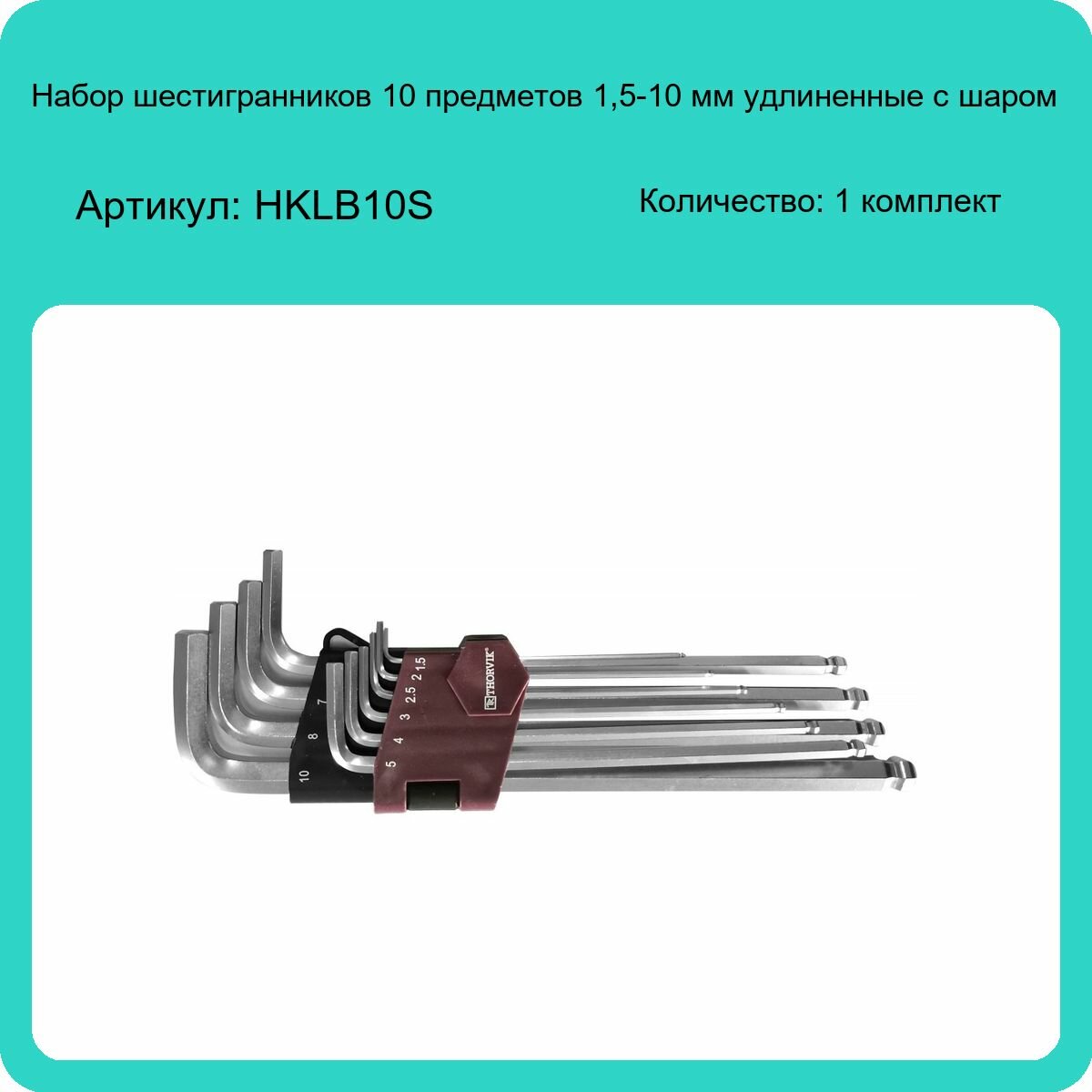 HKLB10S THORVIK Ключи шестигранные с шаром 10 предметов 1,5-10 удлиненные Thorvik HKLB10S