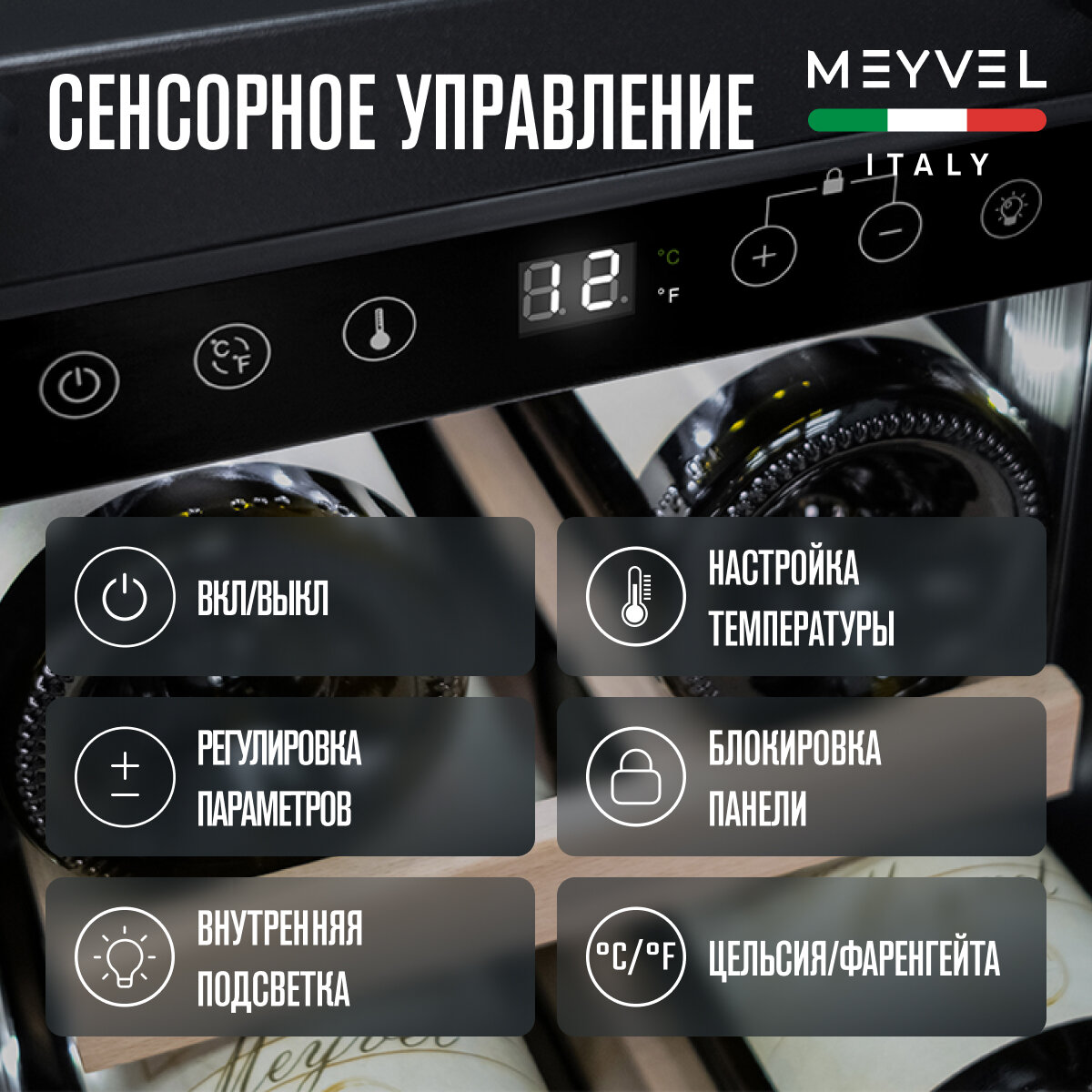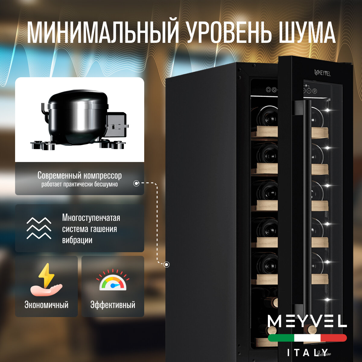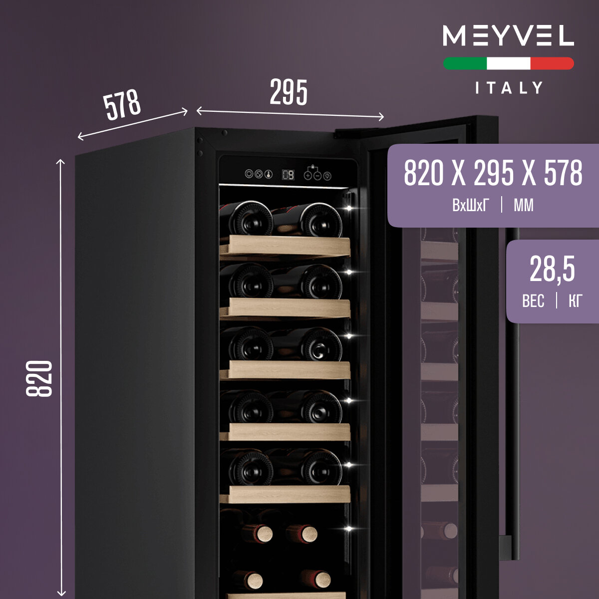 Винный холодильный шкаф Meyvel MV19-KBT1 компрессорный (встраиваемый / отдельностоящий холодильник для вина на 19 бутылок) интересное: