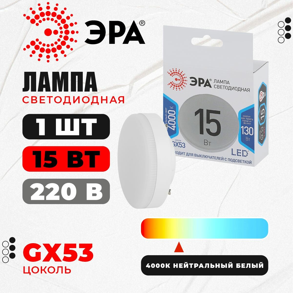 Купить ЭРА Б0036552 Лампочка светодиодная STD LED GX-15W-840-GX53 GX53 15Вт таблетка нейтральный белый свет