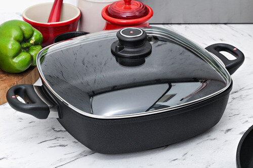 Набор алюминиевой посуды с алмазным покрытием из сотейника со стеклянной крышкой и сковороды, Черный Swiss Diamond XD Classic+ Induction