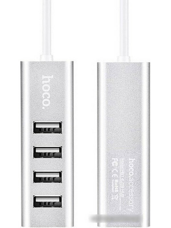 Разветвитель Hoco HB1, 4xUSB 2.0, серебристый
