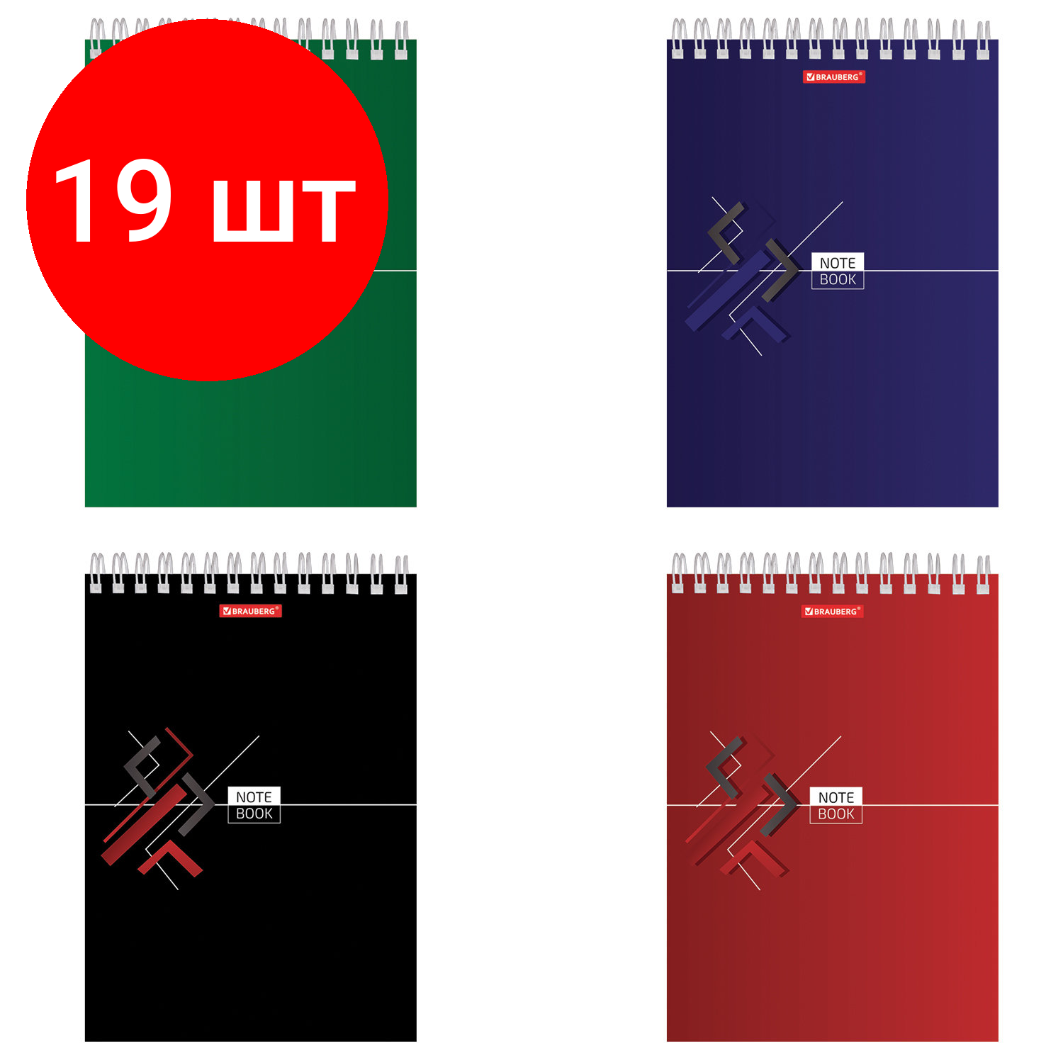 Купить Комплект 19 шт, Блокнот А5 (146х205 мм), 80 л., гребень, картон, жесткая подложка, клетка, BRAUBERG, "Стильный", 129818