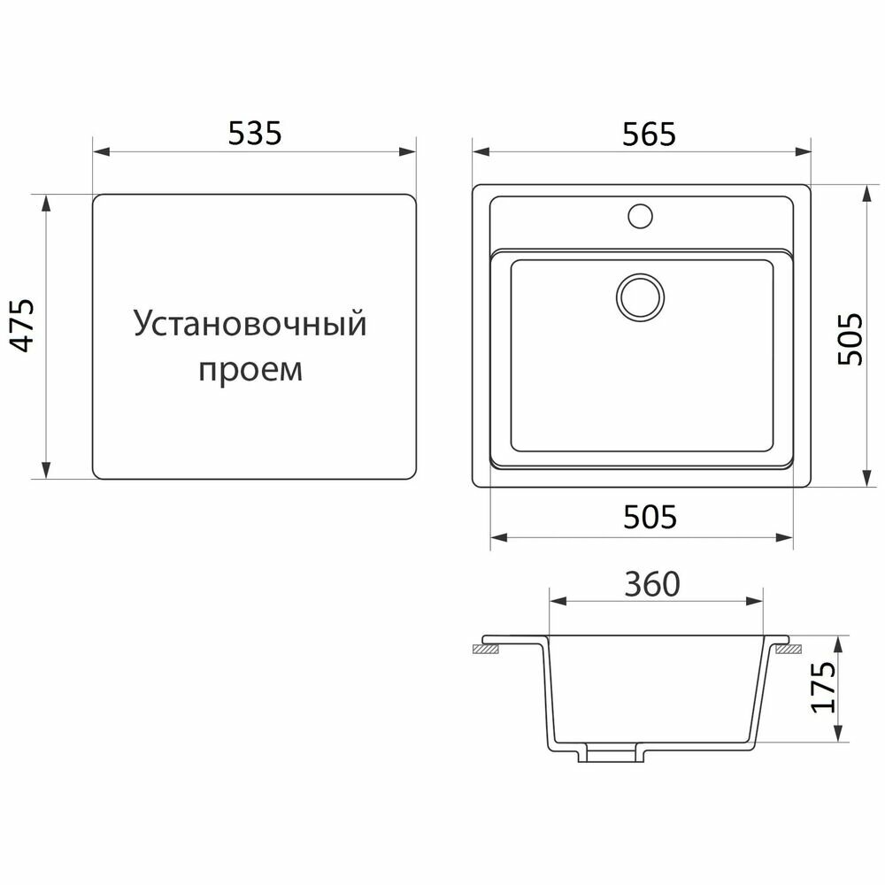 Мойка для кухни GreenStone GRS-06-309, врезная, 565 x 505 мм, темно-серая