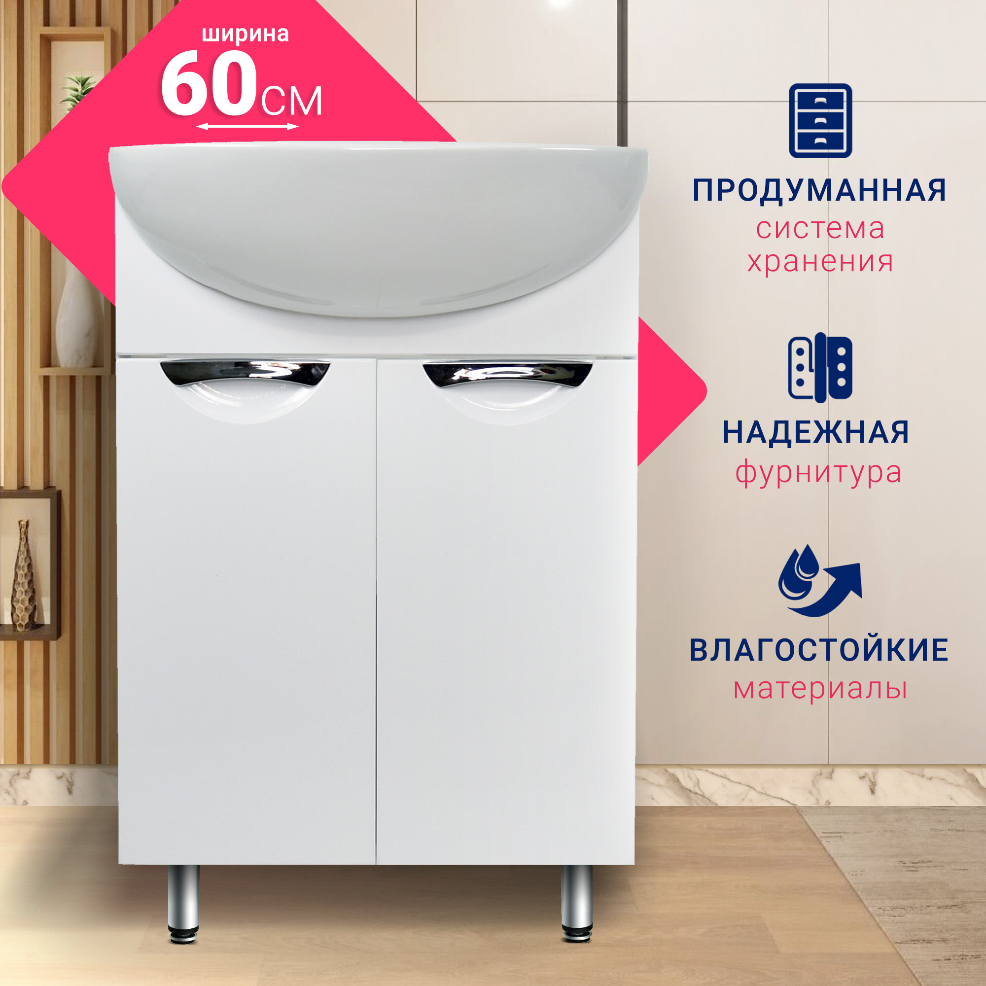 Тумба Афина 60 напольная, белая, под умывальник Уют 60 DORATIZ 9912.474 интересное: