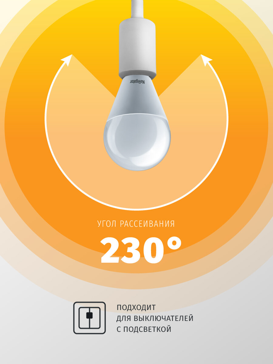 Светодиодная лампа Navigator 61 336, 8.5 Вт, шар Е27, теплый свет 2700K, упаковка 10 шт.