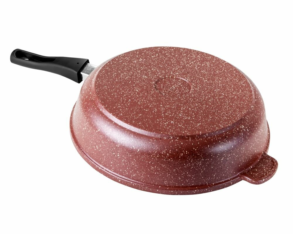 Сковорода антипригарная литая 28см со съемной ручкой и стеклянной крышкой Шоколад ТМ Горница