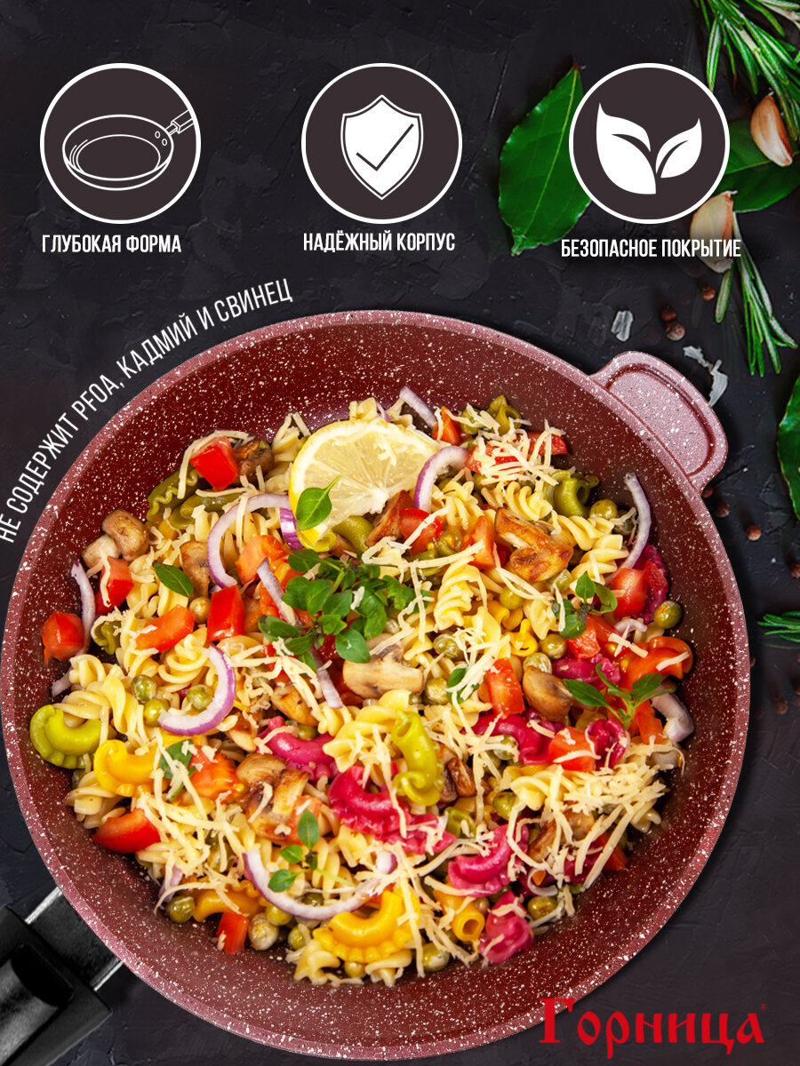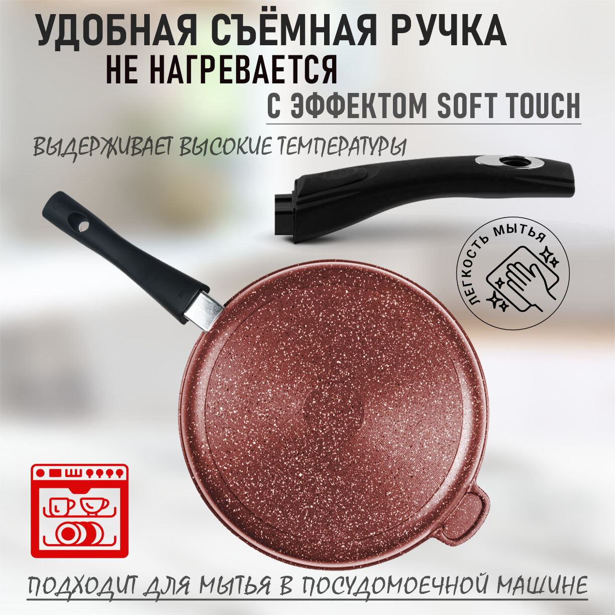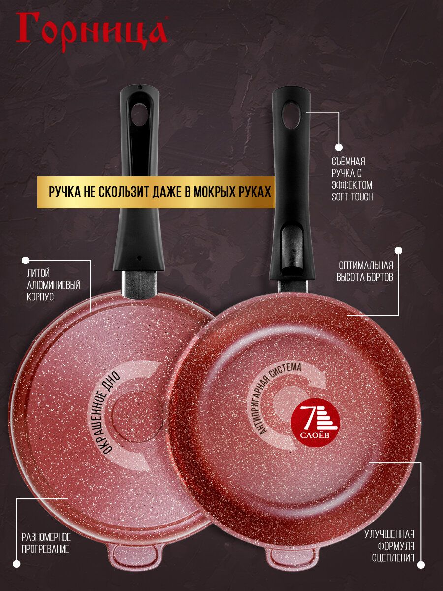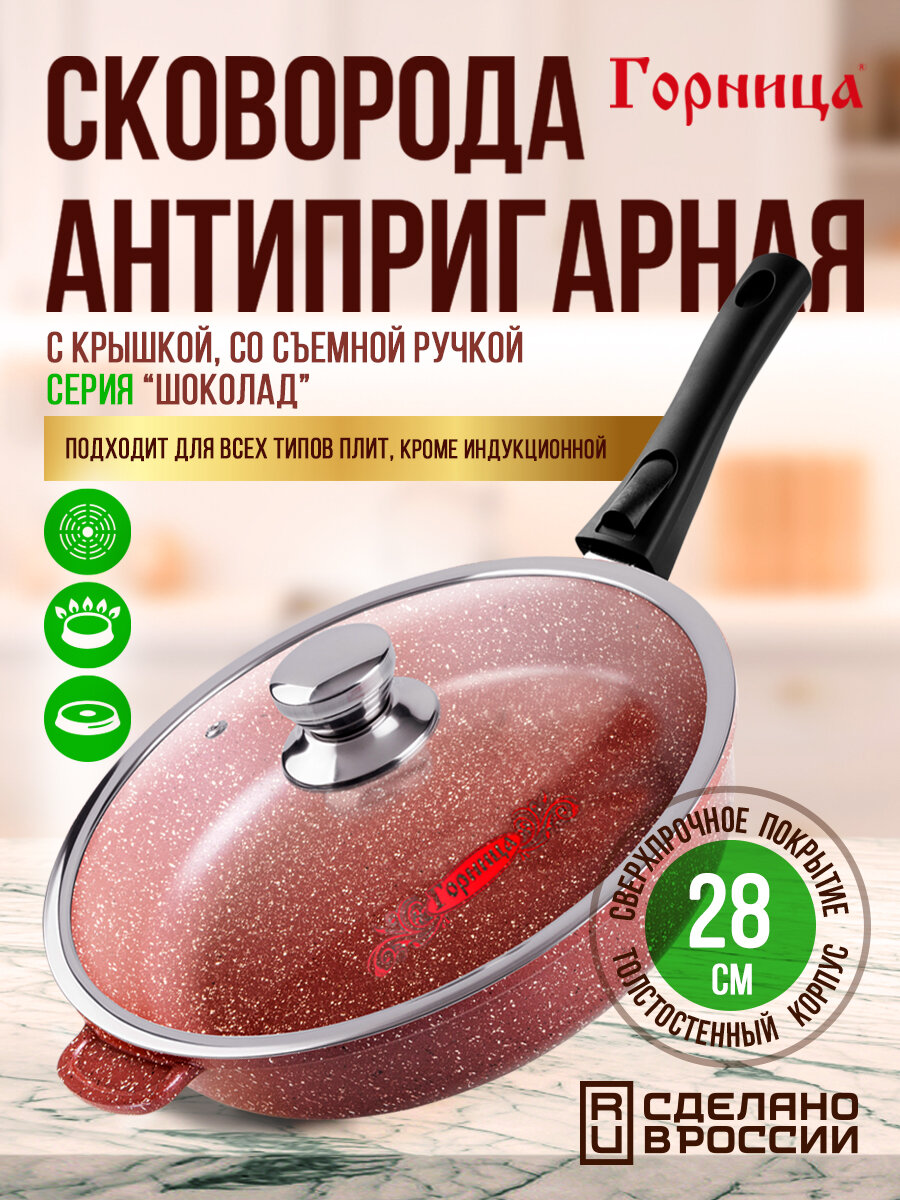 Купить Сковорода 28 см, съемная ручка (софт тач), с крышкой, подарочная упаковка, серия Шоколад Горница