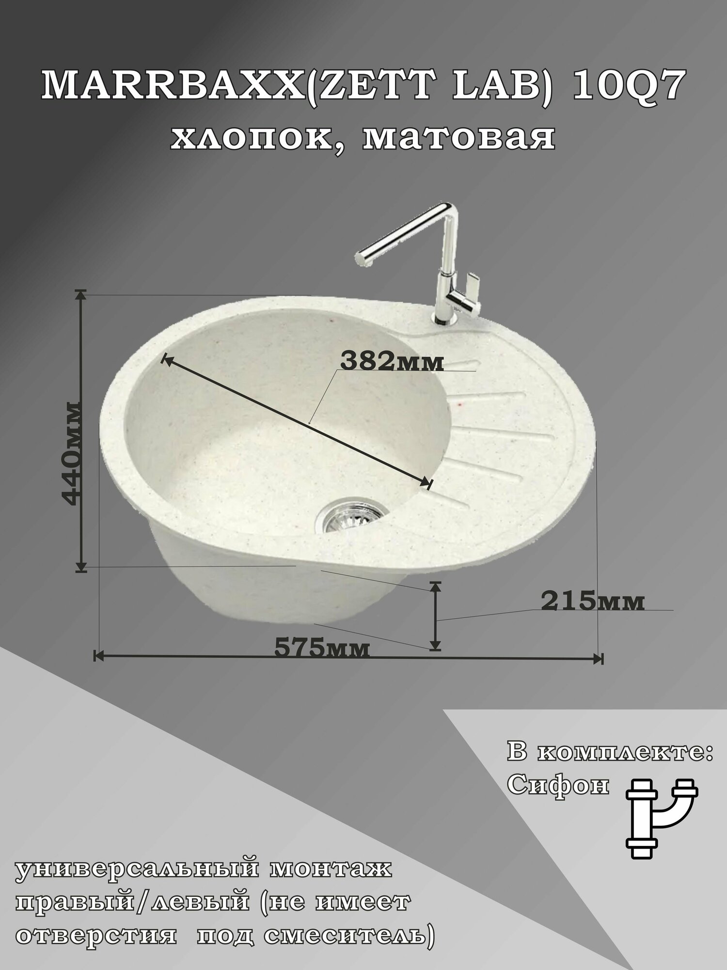 Купить Мойка для кухни каменная MARRBAXX 10/Q7, хлопок, матовая с сифоном