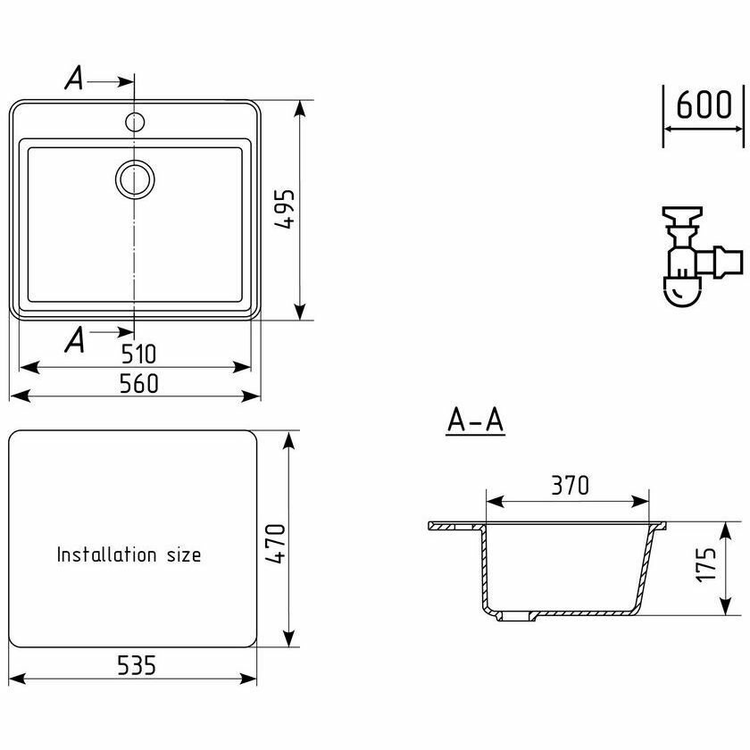 Мойка для кухни из искусственного камня Ulgran U-104-343, антрацит