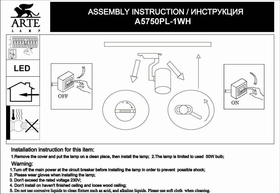 | Подробная комплектация | Споты и трек-системы Arte Lamp A5750PL-1WH |