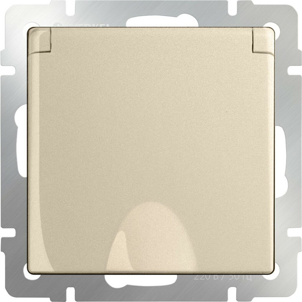 Розетка Werkel влагозащищенная с заземлением с защитой крышкой и шторками (шампань)