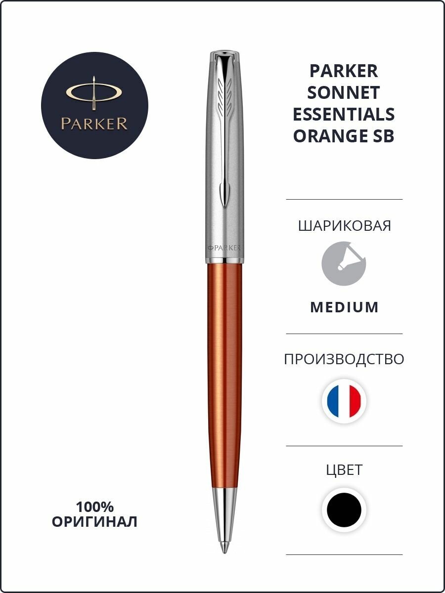Шариковая ручка Parker Sonnet Essentials Orange SB Steel CT, цвет чернил black, перо: M, в подарочной упаковке.