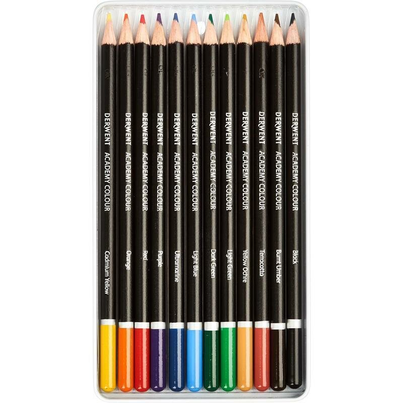 Набор цветных карандашей Derwent Academy Colour, металл пенал, 12 цветов