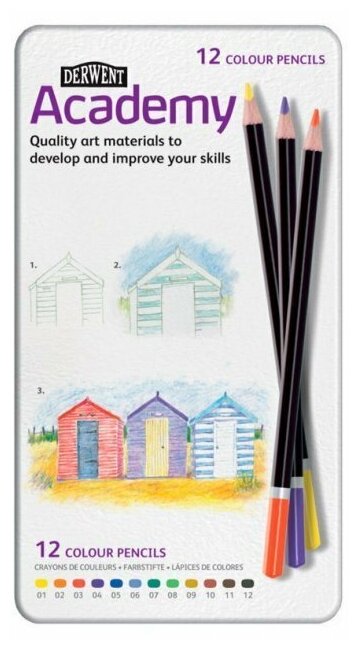 Набор цветных карандашей DERWENT "Academy" 12цв. в метал. коробке интересное: