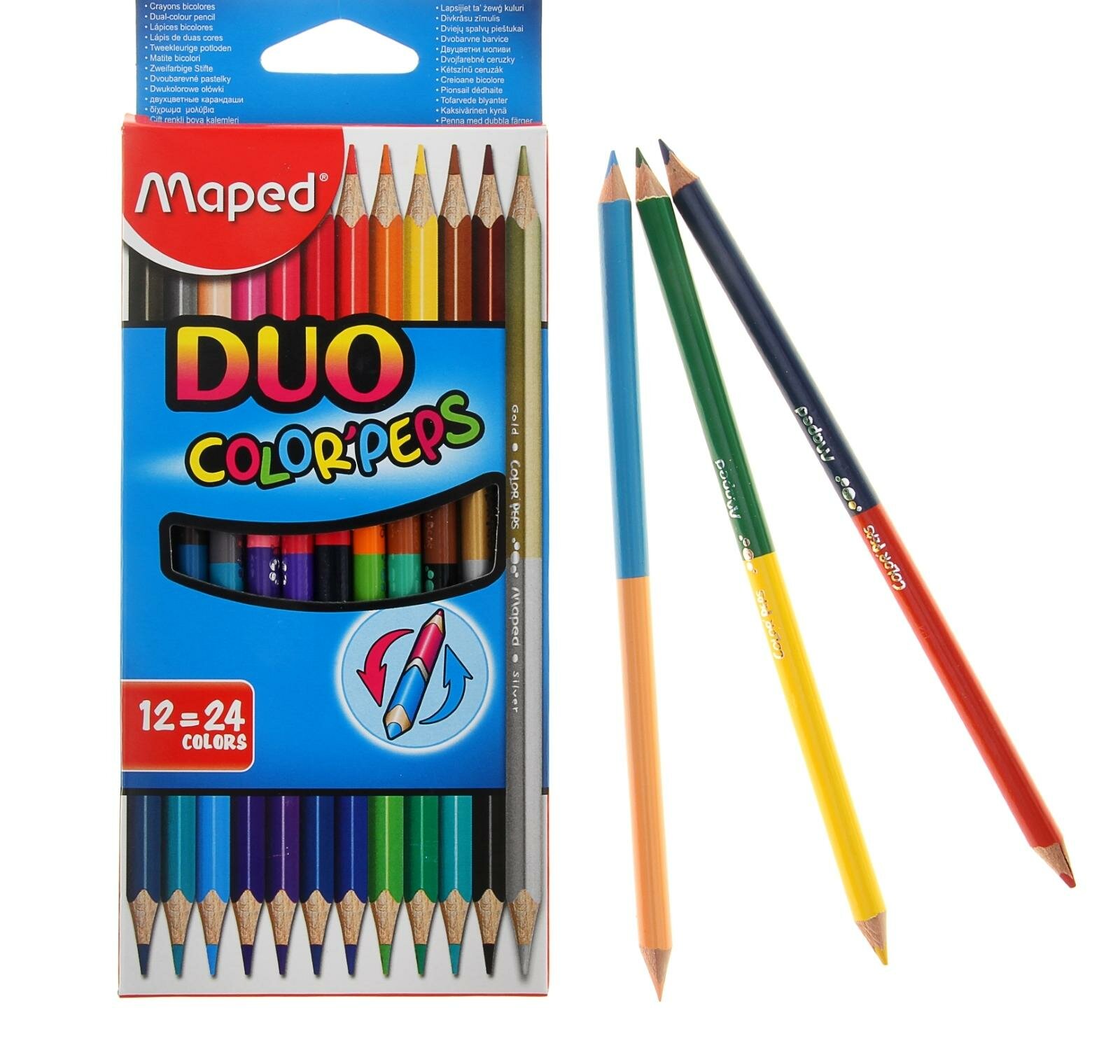 Карандаши двусторонние MAPED (Франция) "Color'Peps Duo", 12 штук, 24 цвета, трехгранные, 829600