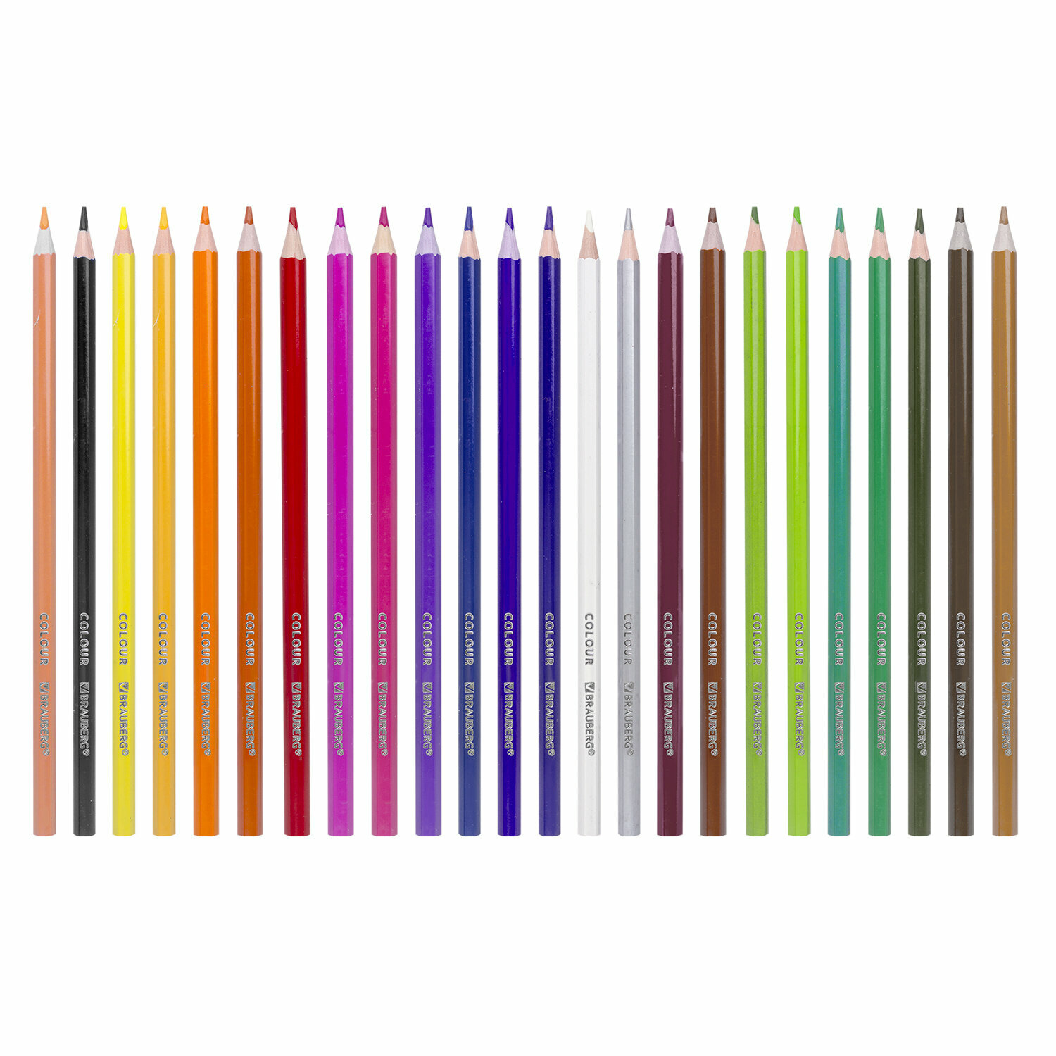 Комплект 25 шт, Карандаши цветные пластиковые BRAUBERG PREMIUM, 24 цвета, шестигранные, грифель мягкий 3 мм, 181668
