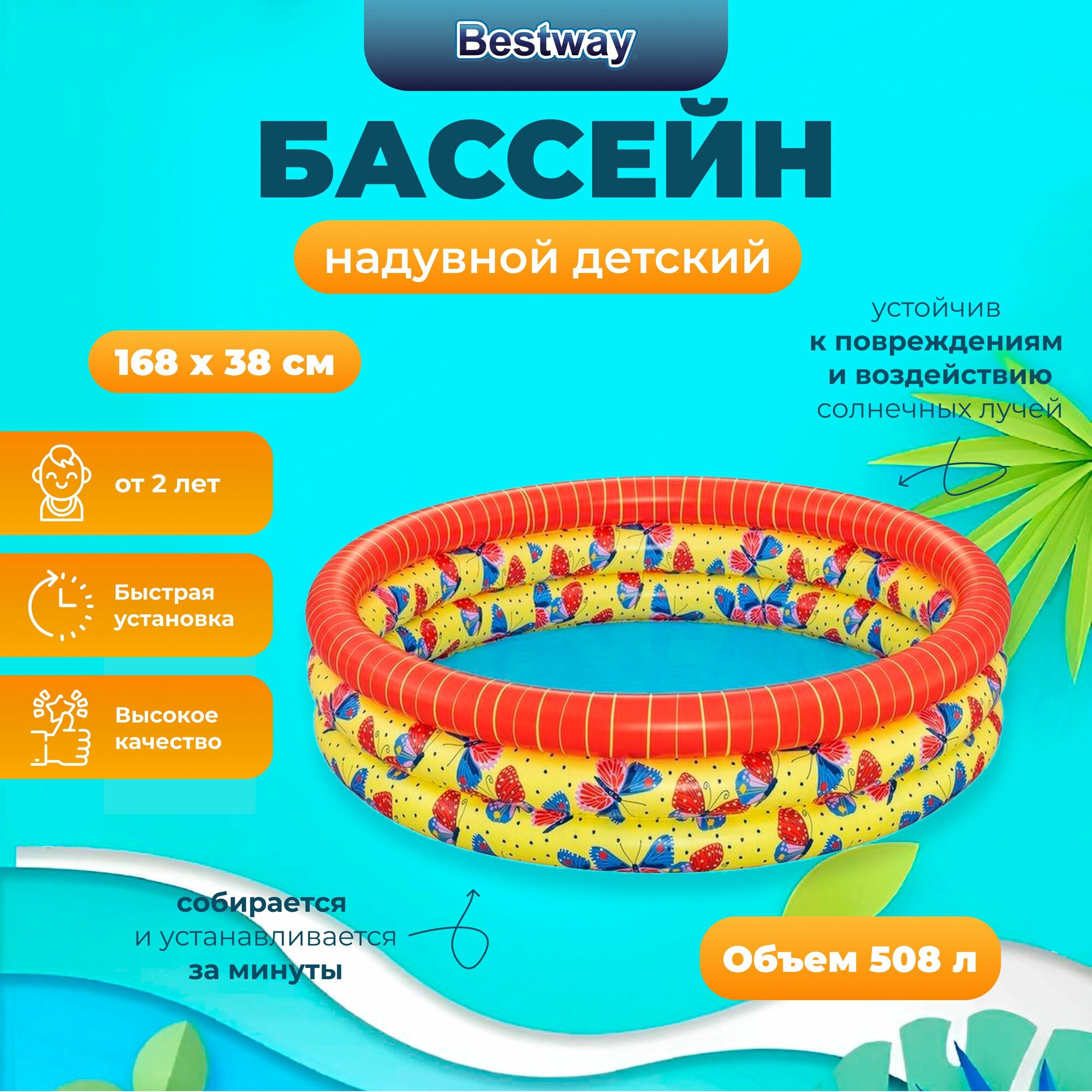 Бассейн надувной Bestway, 168х38 см, Бабочка, 51202, 508 л