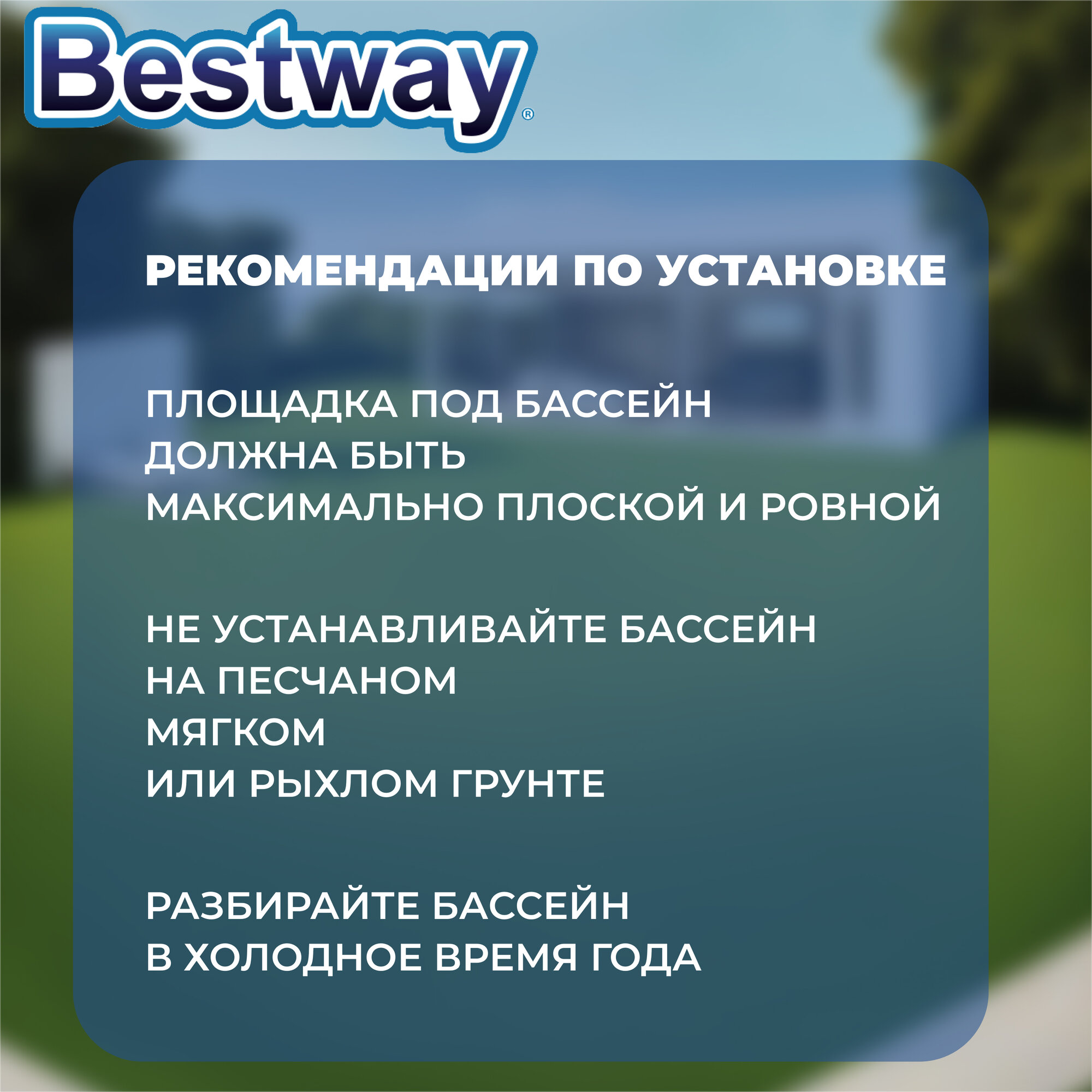 | Дополнительная информация | комплектация: бассейн, фильтр-насос, лестница, поплавок-дозатор #58501, тент, ремкомплект, инструкция; характеристики и комплектация могут быть изменены производителем без предварительного уведомления. |