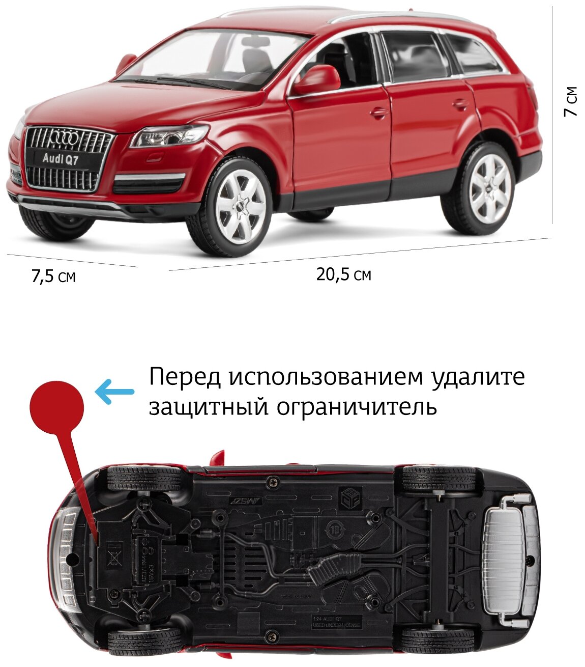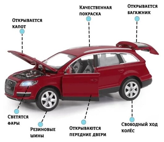 Модель машины Автопанорама 1:24 Audi Q7, бордовый, открываются двери, капот, багажник, свет, звук (JB1251130)